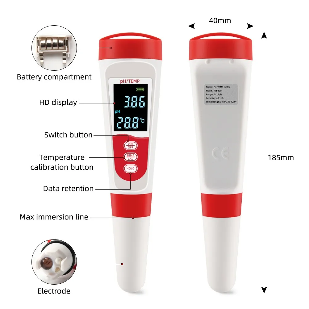 1. ЖК-дисплей высокой четкости, отображение ph и температуры одновременно, его можно легко читать ночью