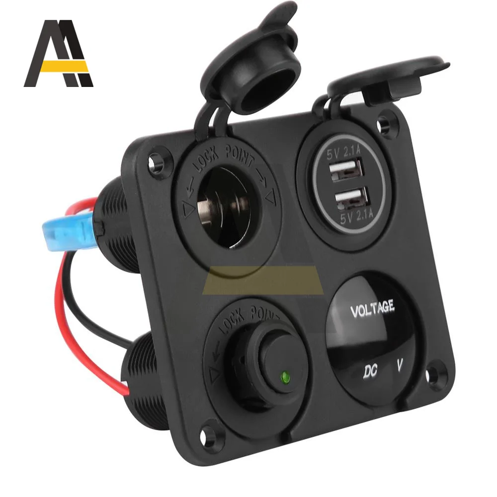 12V/24V переключатель автомобильного зарядного устройства Панель вольтметр Dual USB розетка 3.1A 240 Вт прикуриватель на включения/выключения Кулисный 4 в 1 Moto Мощность адаптер