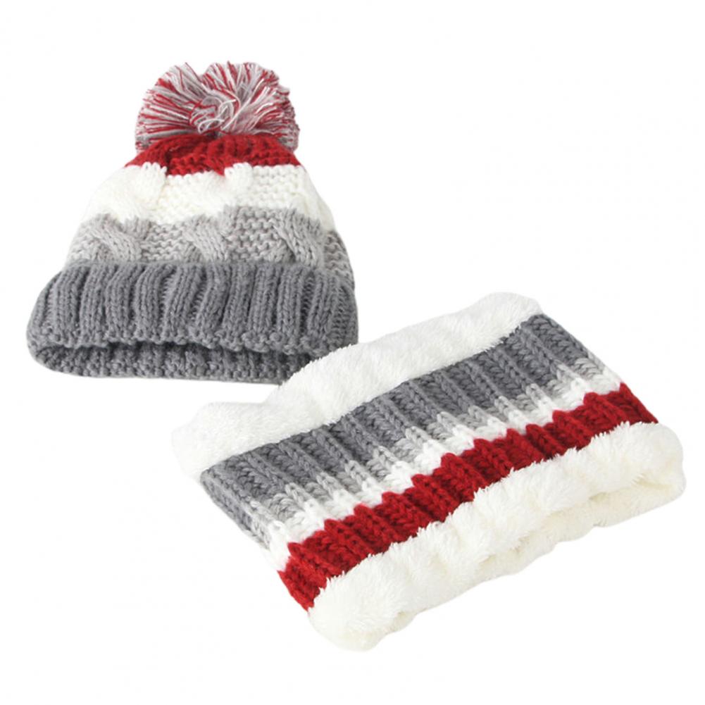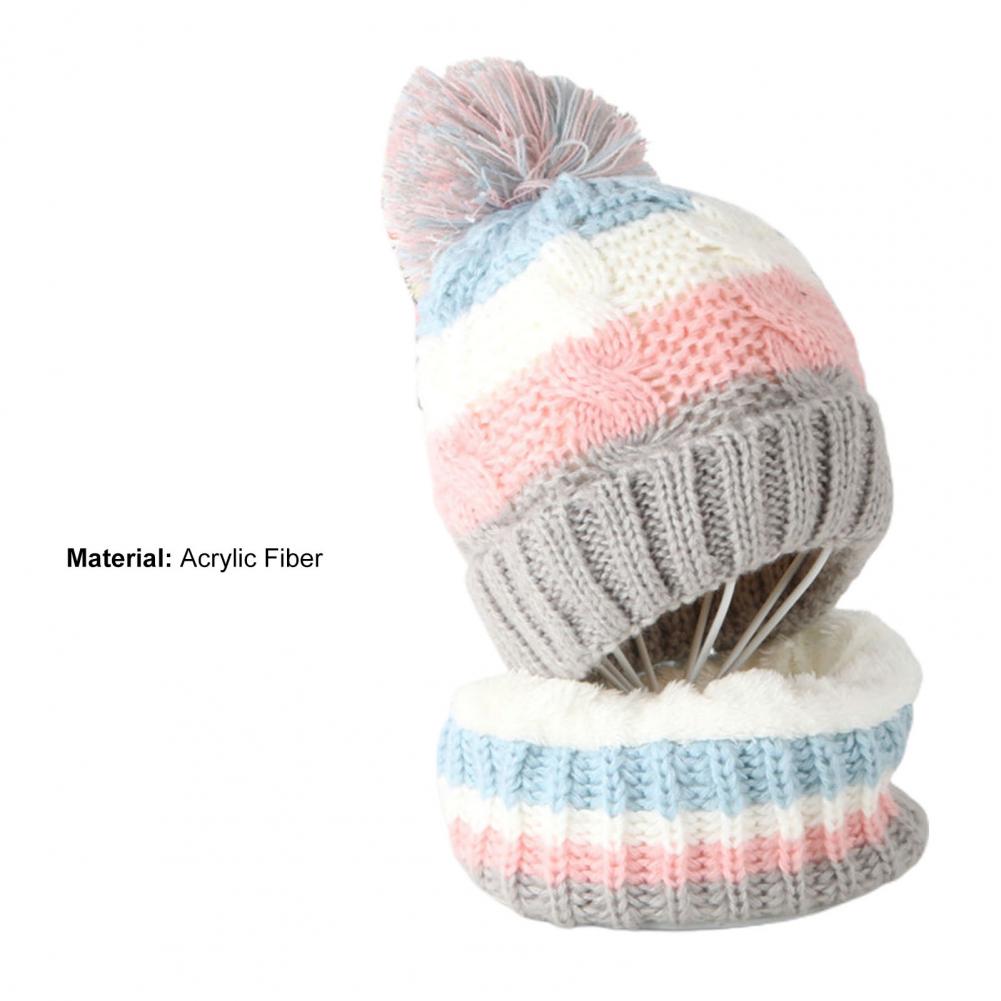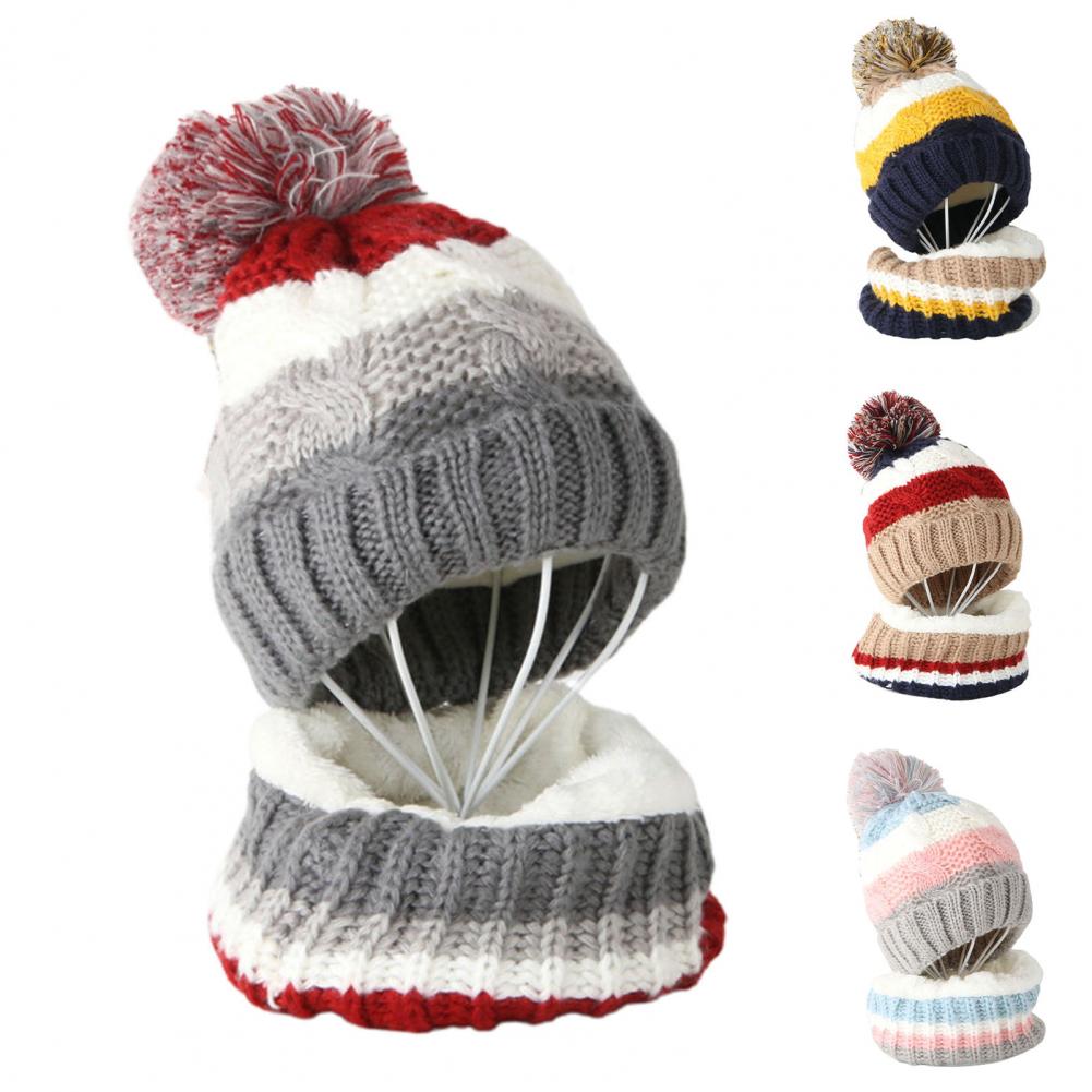 Милый эластичный осенне-зимний детский комплект с флисовой подкладкой, вязаная шапочка-шарф в полоску, шапка-шарф, шарф, 2 шт./компл.