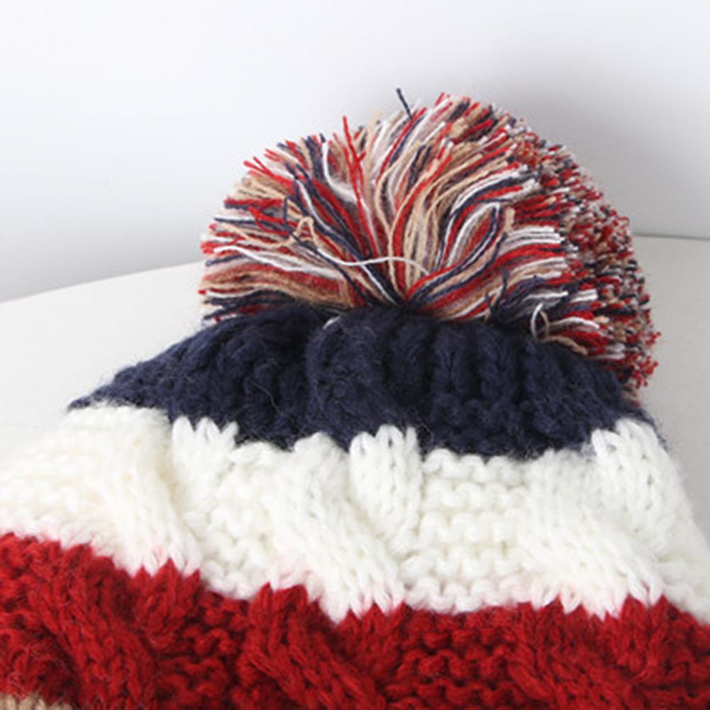 Полосы контрастных цветов и плюшевые шарики, зимний головной убор, шарф очень теплый и модный. Однотонный комплект со шляпой и шарфом выглядит просто и деликатно.