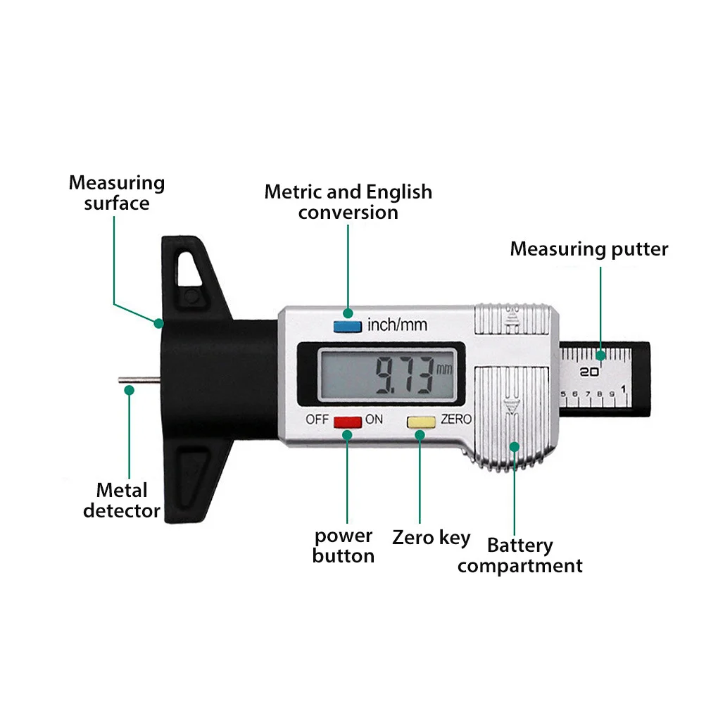 Профессиональное использование: Этот измерительный прибор подходит для мониторинга глубины резьбы, износа шин, толщины, глубины и других данных, что облегчает ремонт.