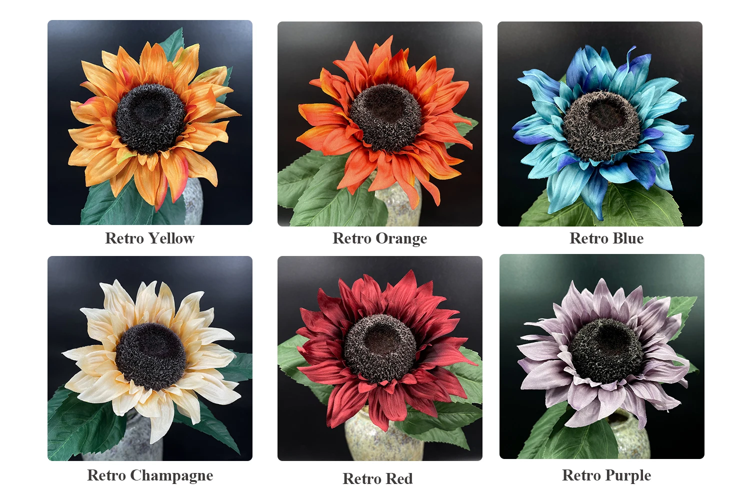Recommendation by seller: Solid color and multicolor mixing arrangement for your options; The biggest feature of this series is its huge flower shape and rich colors. The colors of flower petals which are specially designed and dyed look particularly beautiful under natural sunlight or indoor lighting. For single style arrangement multicolor arrangement is recommended as the overall effect will be much richer; This flower can be used as the main flower of flower arrangement due to its relatively large flower shape. It can be matched with auxiliary flowers and plants of similar colors. No matter which color of sunflower you select to make the main flower, it will look outstanding because of its large flower tray which gives the soul to your flower arrangement work; Pictures of Scene Display below are for your reference, the matching materials are on sale in our store as well, you can find it in the catalog on store homepage . If you can't find the corresponding link you want, please leave a message to the seller before placing your order.