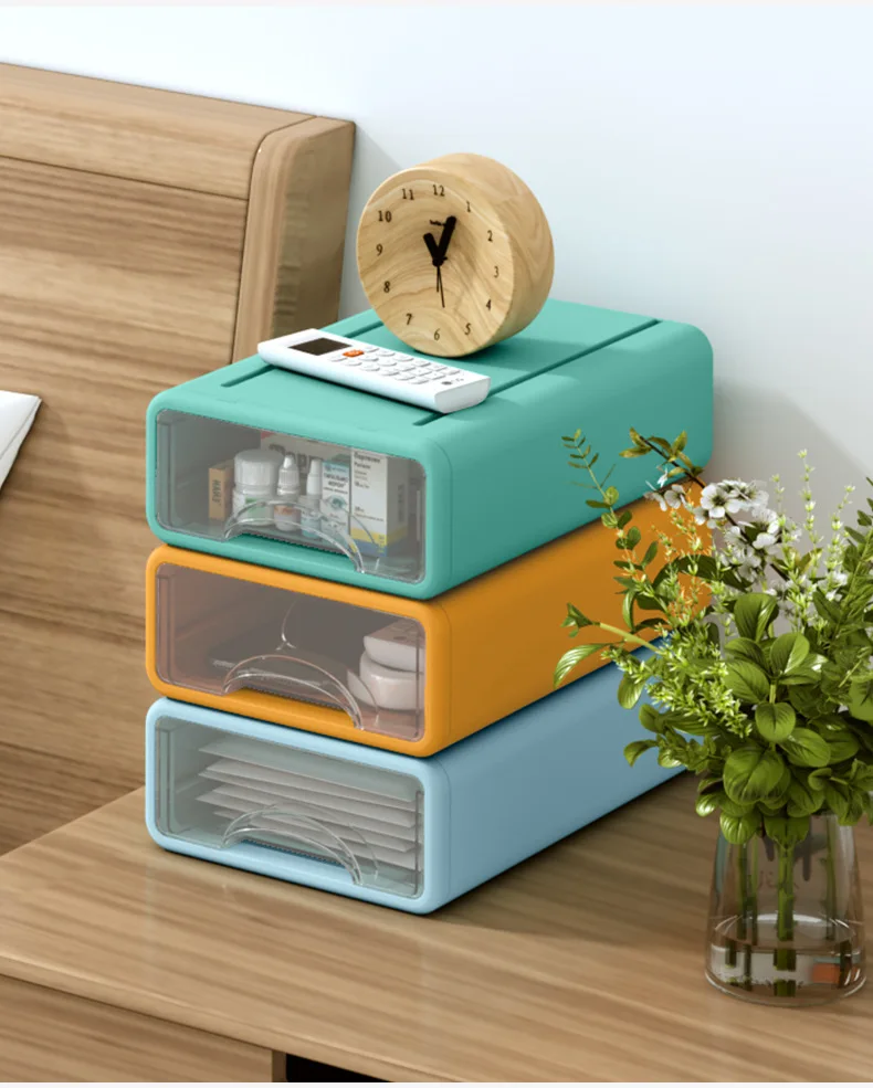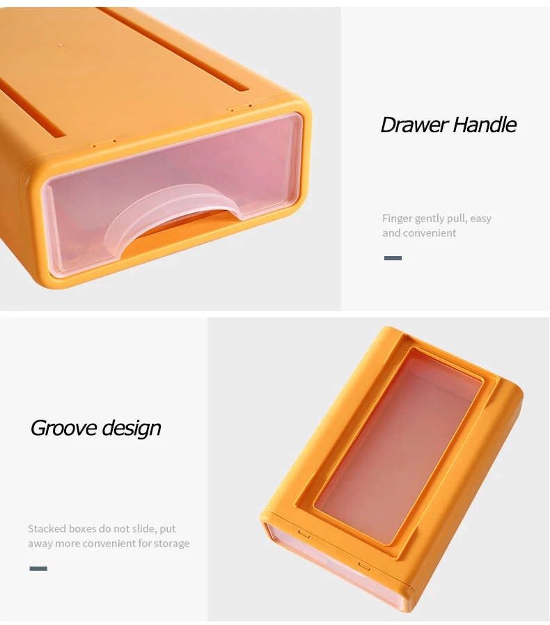 Brand NameNoneModel NumberNJM604L-1LOriginMainland ChinaTypeStorage DrawersMaterialPlasticUseSundriesFeatureEco-FriendlyFeatureStockedPlastic TypePPMeasurement unitpiece/piecesEach pack1Plastic Container ColorBlue, Yellow, Green, OrangeOrganizer drawersStorage boxesDesk organizerMakeup organizer