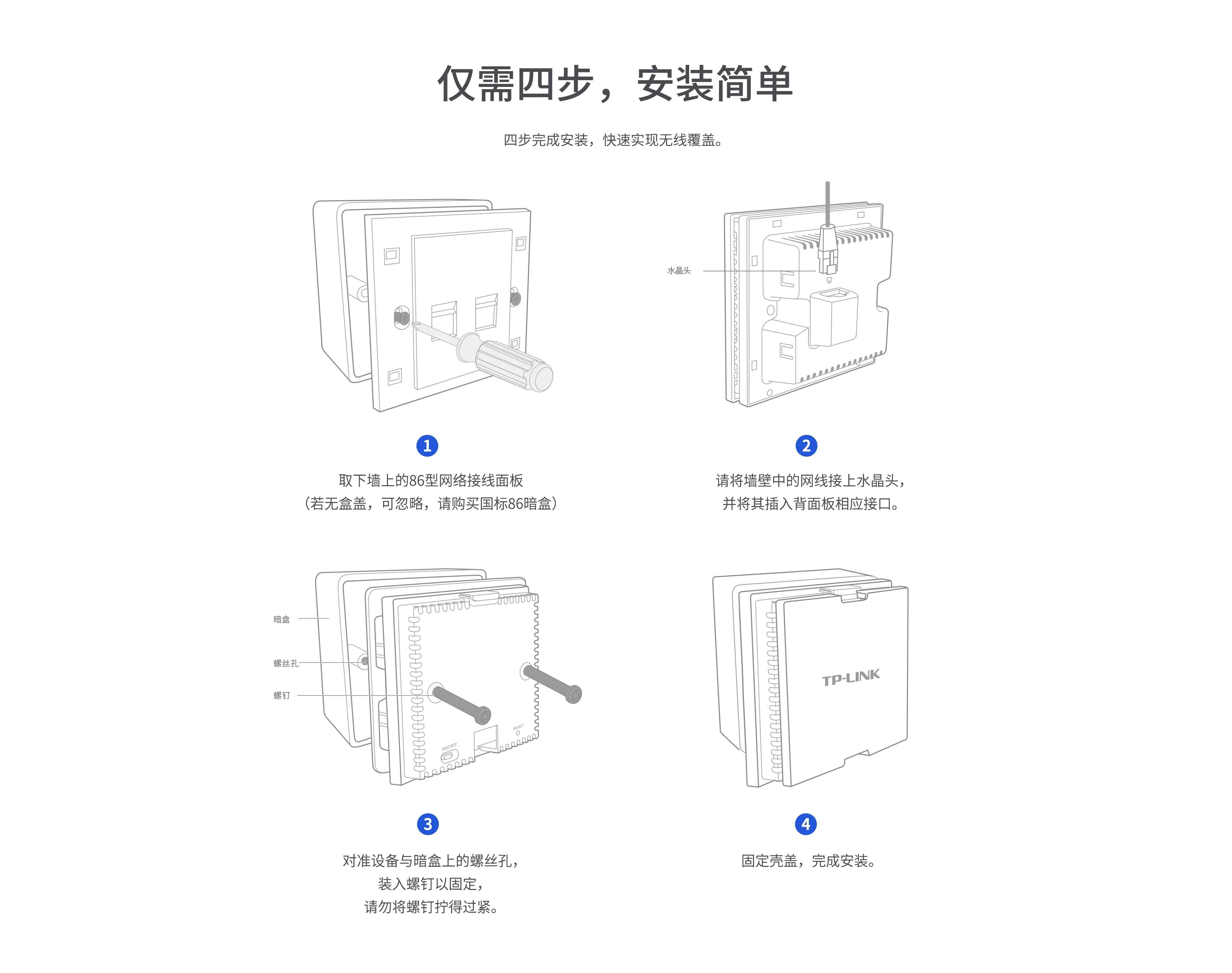 > Национальный стандарт 86 дизайн панели, блок питания PoE, простой в установке, простой в использовании, национальный стандарт 86 дизайн панели, может непосредственно заменить оригинальную сетевую панель без переподключения и не повредить Оригинальное украшение. Поддерживает 802.3AF/at стандартный сетевой кабель питания PoE. Каждому AP нужен только один сетевой кабель, который не ограничен условиями питания. Простое размещение AP и удобная конструкция.