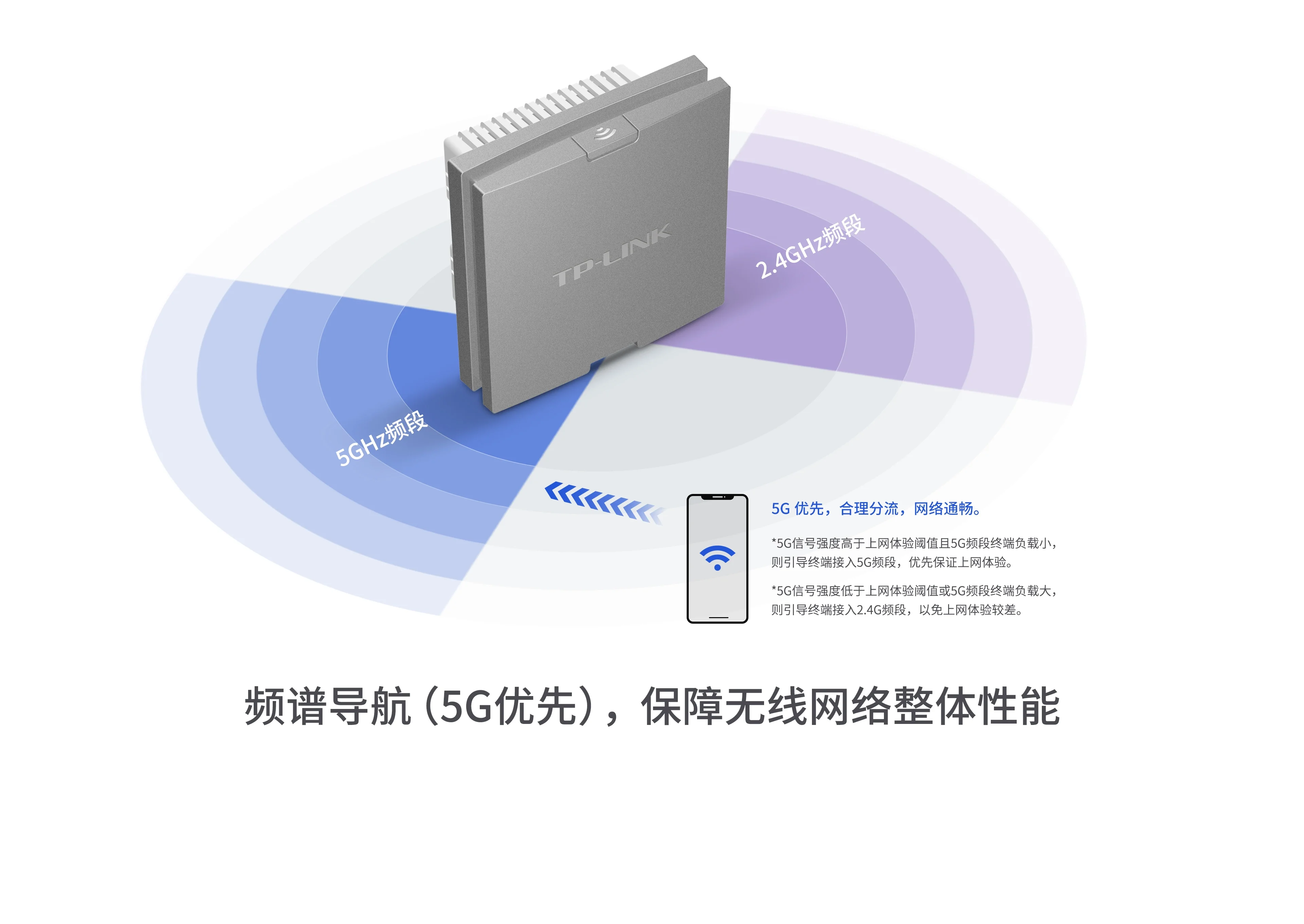 > Спектра навигация, руководство двухдиапазонный пользователям предпочтительно для подключения к Wi-Fi 5 ГГц Диапазон частот, баланс 2,4 ГГц и 5 ГГц полосы частот для того, чтобы обеспечить производительность сети