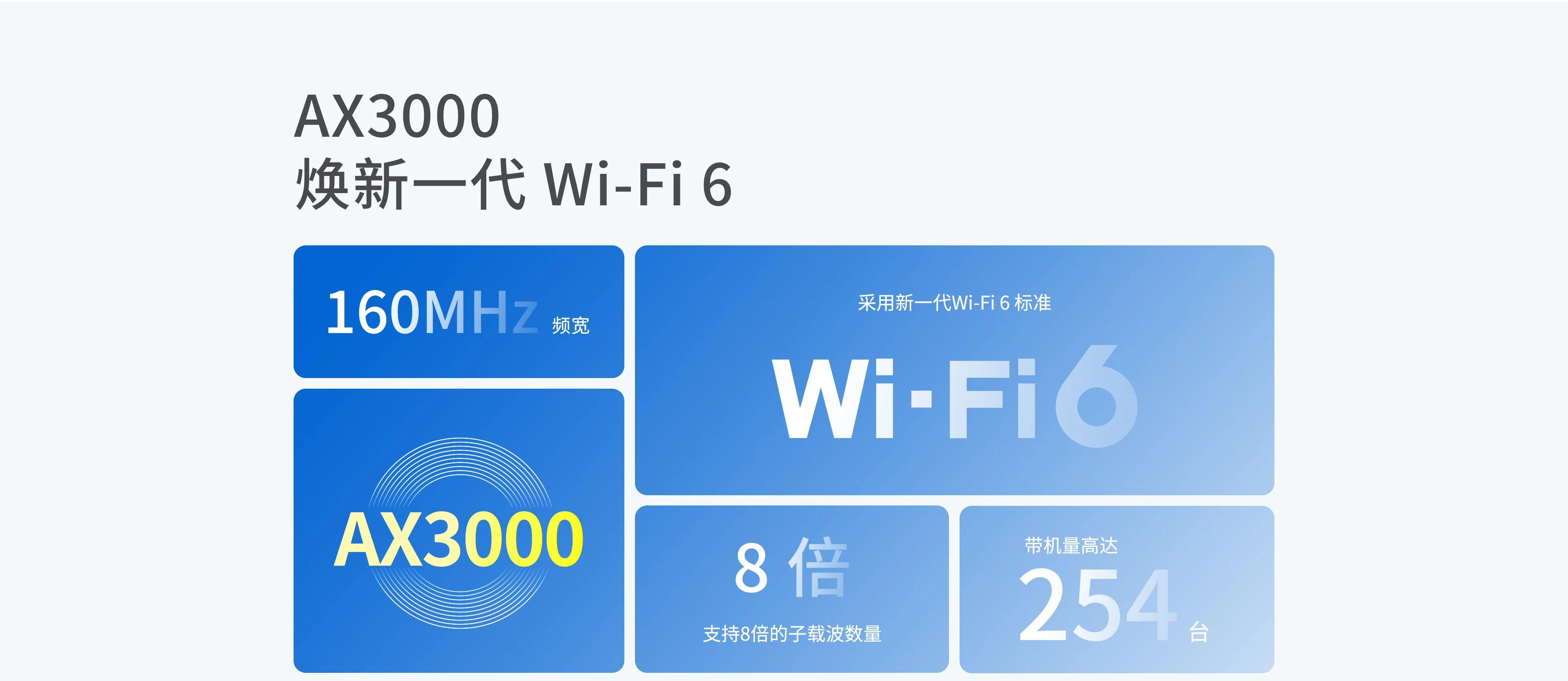 > Технология Wi-Fi 6 нового поколения обеспечивает высокоскоростную и стабильную беспроводную сеть 2,4G/5G двухдиапазонную связь с беспроводной скоростью до 2976 Мбит/с, удовлетворение потребностей доступа в Интернет в различных пользовательских и широкополосных сценариях. 2,4 ГГц Частотный диапазон имеет высокую совместимость и дальность передачи. Частотный диапазон 5 ГГц является чистым с меньшим количеством помех и двойной частотой связи. Он может быть широко использован в условиях плотной окружающей среды, таких как отели, квартиры, общежития и виллы.