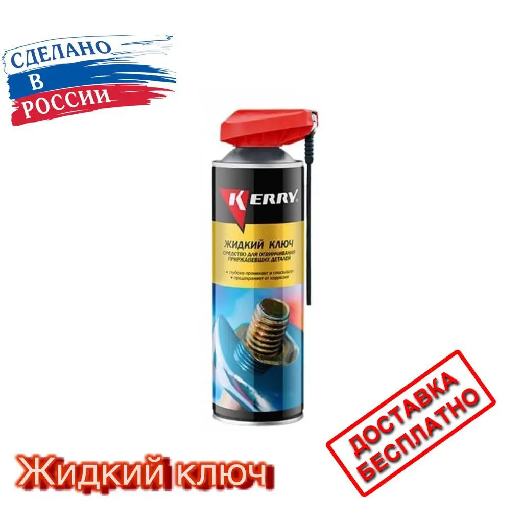 Жидкий ключ KERRY средство для отвинчивания приржавевших деталей KR-940-5 11606157 используют как в автомобильном ремонте, так и в быту для обработки петель, пружин, заржавевших замков, резьбовых соединений. Средство устраняет влагу с электрических контактов и обеспечивает защиту поверхности от появления коррозии. В состав продукта входит особое масло, отличающееся высокой проникающей способностью. Специальный клапан 360° дает возможность наносить вещество перевернув баллон.