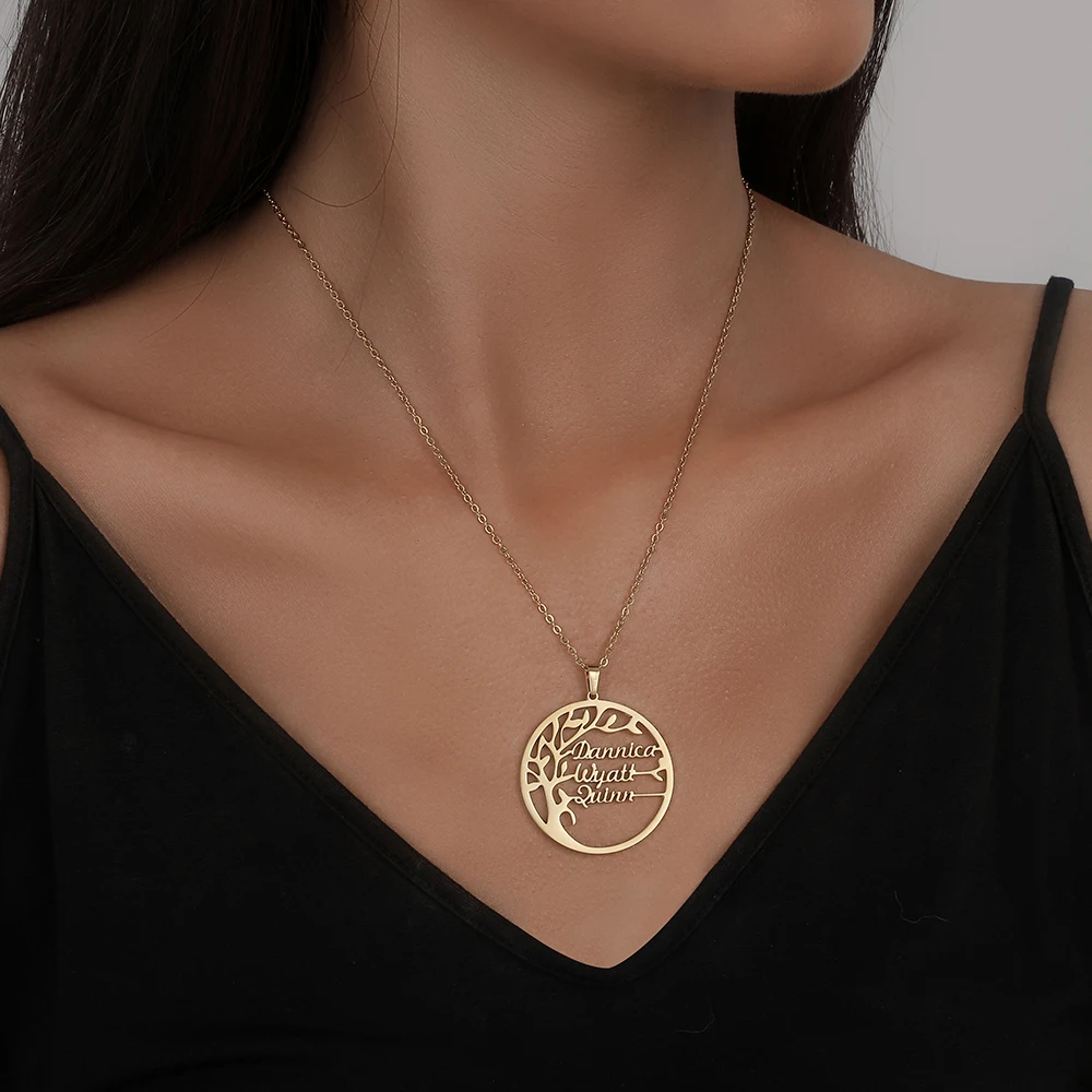 NEULRY оптовая продажа Прямая поставка персонализированные Семейные Древо жизни имя ожерелье из нержавеющей стали золотые буквы Индивидуальные ювелирные изделия