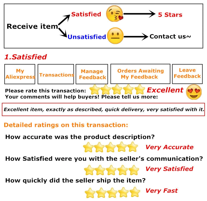 О: если вы хотите узнать о вашей собственной посылка или не можете найти информацию для отслеживания посылка, не волнуйтесь, лучший способ-связаться с нами, мы разберемся с этим вовремя после просмотра информации (иногда не будет ответа из-за разницы во времени, Пожалуйста, будьте терпеливы, подождите)