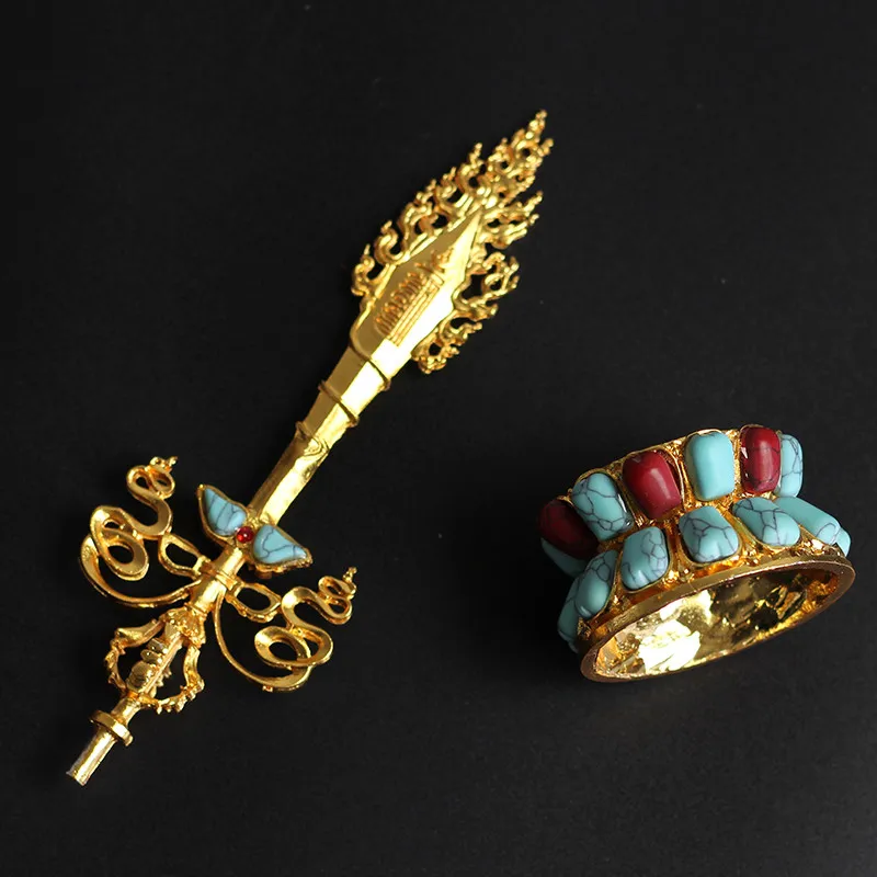 Сплав металла с цветными бусинами Manjusri мудрость меч буддийский непальский Ваджра жертвуемый хвосты инструмент положить украшение