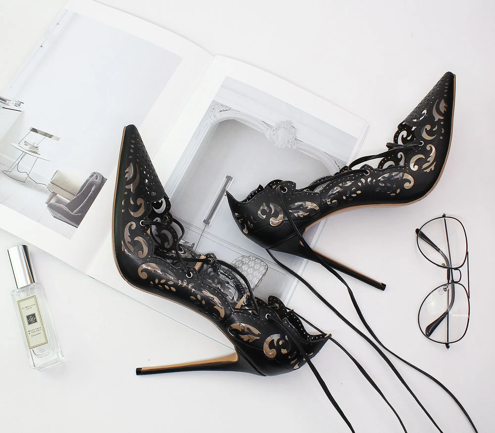 Женские туфли-лодочки с острым носком на высоком каблуке металлической пряжкой |
