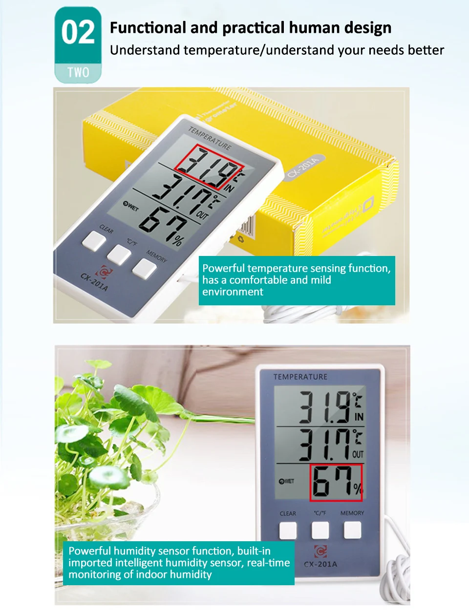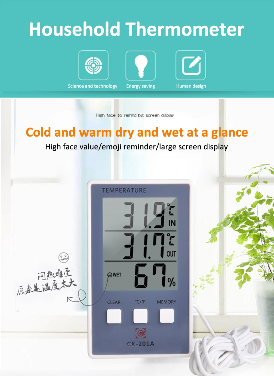 Домашний Цифровой термометр гигрометр CX-201A с зондом ЖК-дисплей Крытый Открытый Температура влажность тестер метеостанция