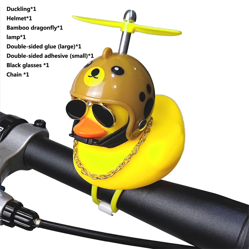 Bike Small Yellow Duck Bicycle bell Luminous/Normal Airscrew Helmet Standing Duck Broken Wind Motor Riding Cycling Lights