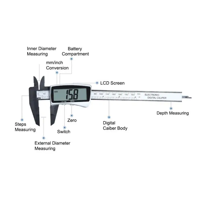 Управление кнопками: с кнопками сбоку экрана, удобно для вас управлять штангенциркулем, переключать измерительный блок, включать/выключать или делать ноль, облегчает вашу работу.