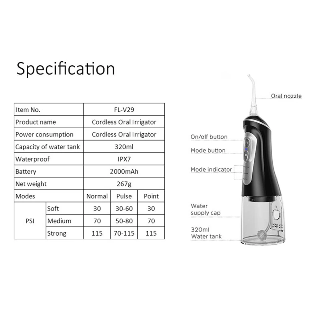 3,5 сменные насадки, пищевые стандартные материалы, безопасные и экологически чистые, вращение на 360 °, многонаправленная очистка рта.