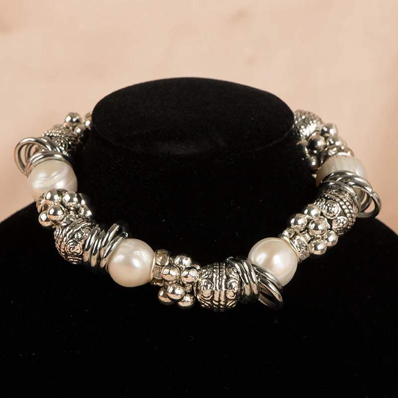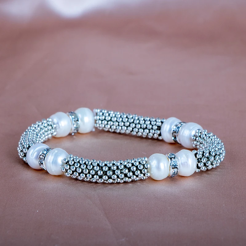 Cellacity Ethnic Rock Fine Jewelry Silver 925 Bracelet for Women Natural Freshwater Pearl Metal punk style Party Wholesale Gift