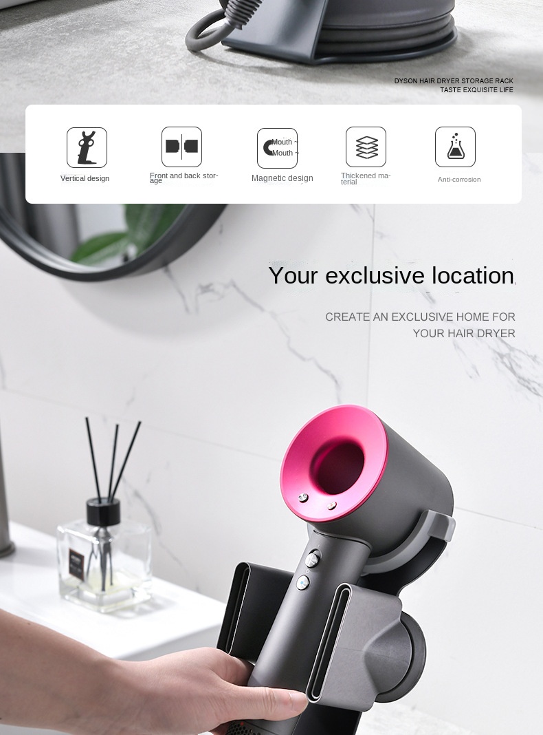【Dyson storage】работает как подставка для сушки волос Dyson, подставка для диффузора и Держатель сопла, устойчиво удерживает фен Dyson. Специально разработан для фен Dyson. Просто Попрощайтесь с грязными туалетными столиками, хлопотным бурением и сложной установкой