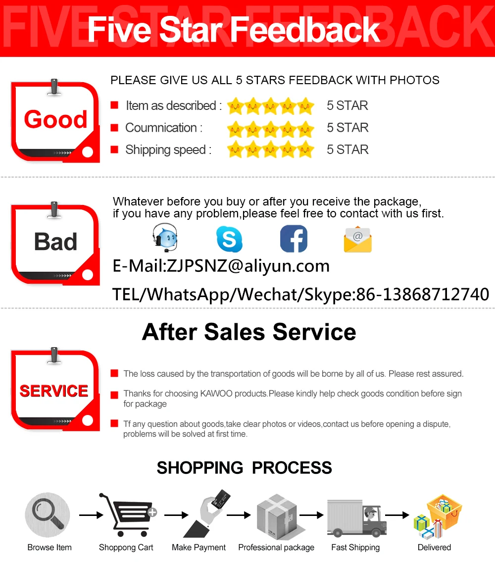 3. Если товары причиняют серьезные повреждения во время транспортировки, пожалуйста, свяжитесь со службой поддержки клиентов вовремя, мы оплатим вас.