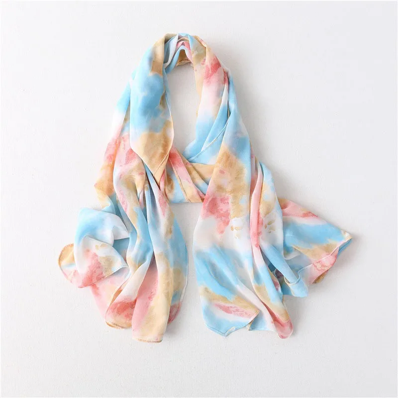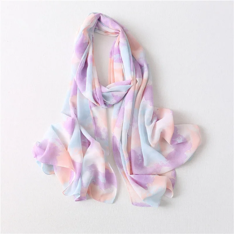 Модный шифоновый хиджаб с принтом в виде морщин и галстука женский шарф