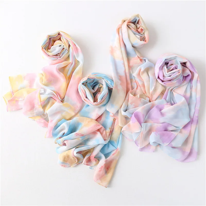 2022 Новый Печатный шифоновый хиджаб шарф высокого качества галстук краситель стрейч мусульманские шарфы женская простая повязка на голову Foulard Wrps 175*50 см