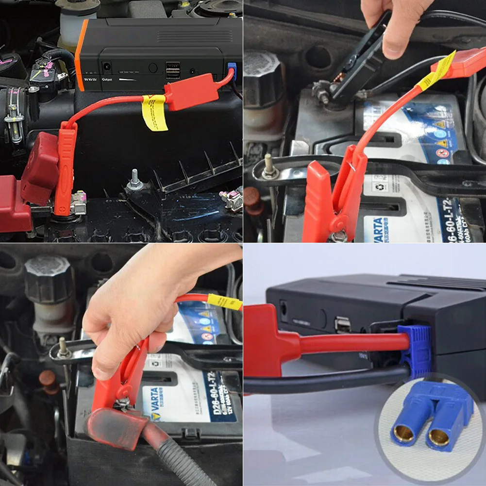 * 1. Анти-обратная положительная и отрицательная Зажимы безопасности для подключения автомобильного аккумулятора и скачка стартера power bank.