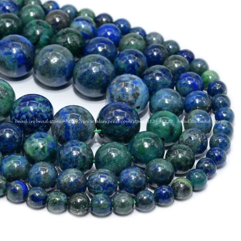 Natural Green Blue Azurite Beads Grade AAA Round Loose Beads For Jewelry Making Crafts DIY