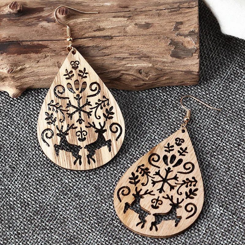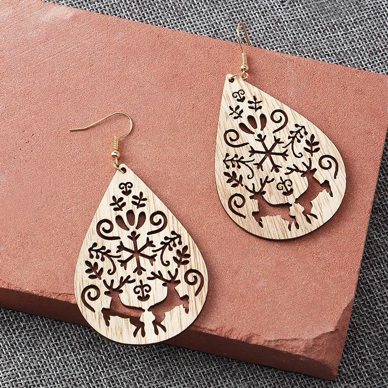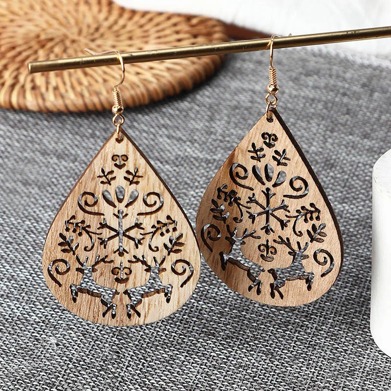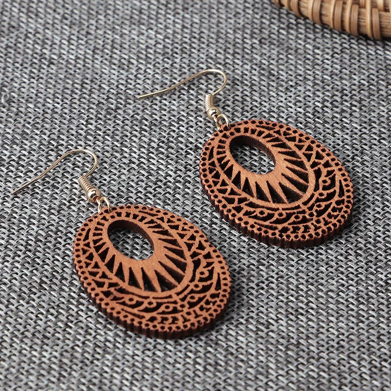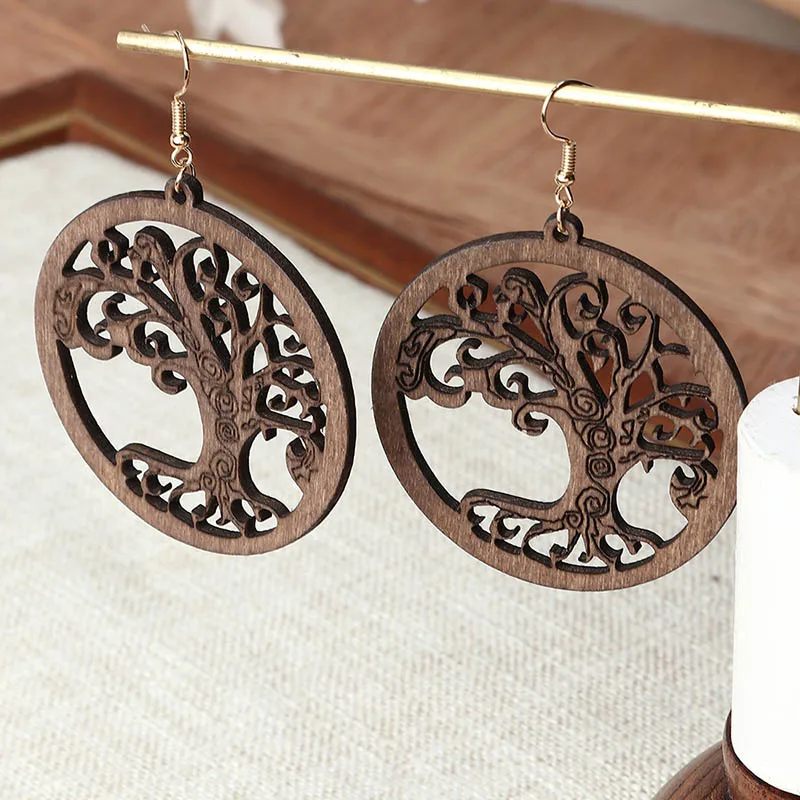 Ins Coffee Wood Africa Queen Hollow Out Flowers Christmas Holiday Tree Of Life Earrings Vintage PartyAfro Jewelry Wooden DIY