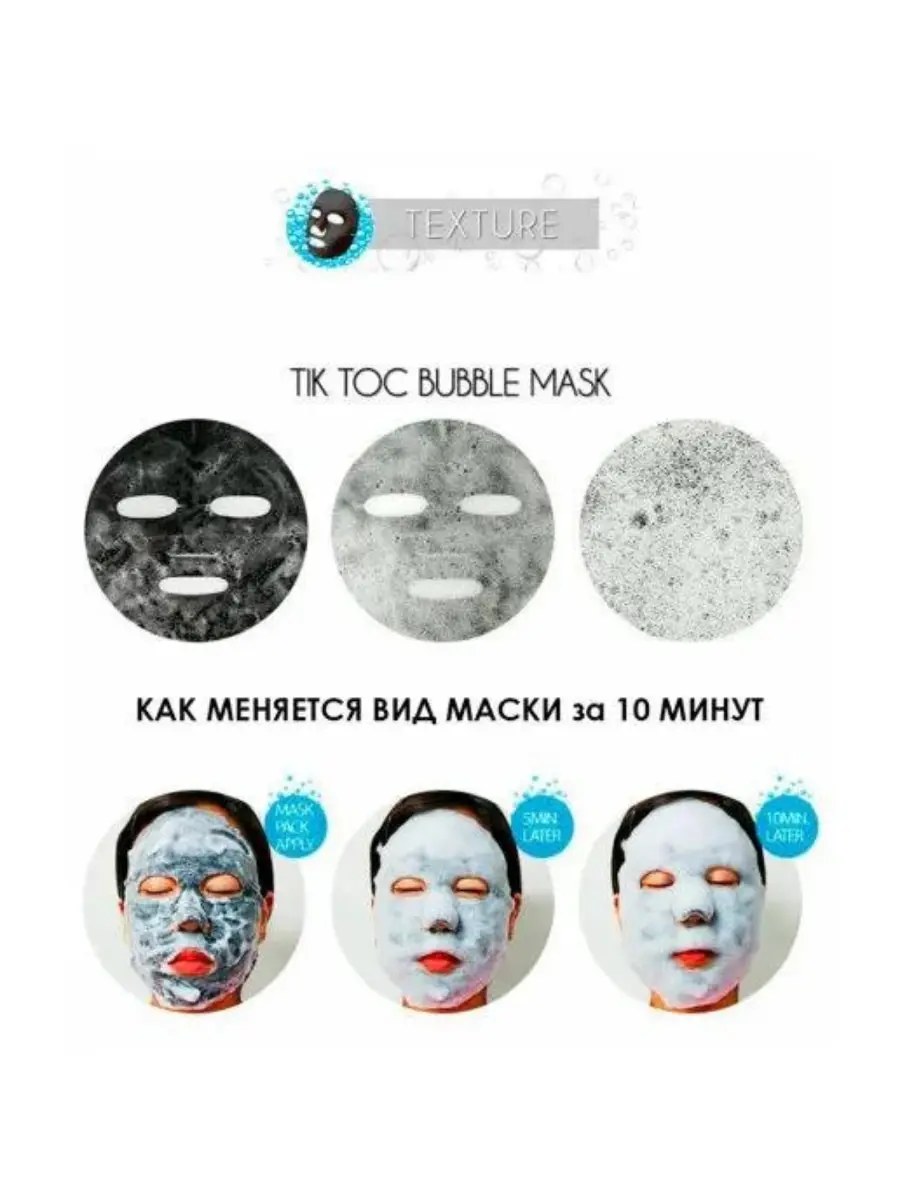 Konad ILOJE TIK TOC BUBBLE MASK (5ea) Пузырьковая тканевая маска для лица для очищения кожи лица и пор, 5 штук
