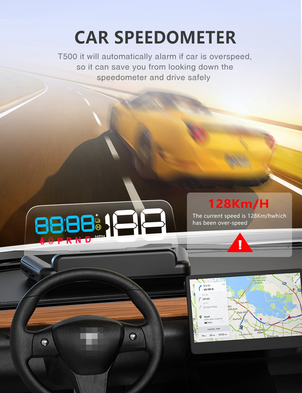 T500 он будет автоматически оповещать, если автомобиль превысит скорость, так что он может сэкономить от просмотра спидометра и безопасного вождения.