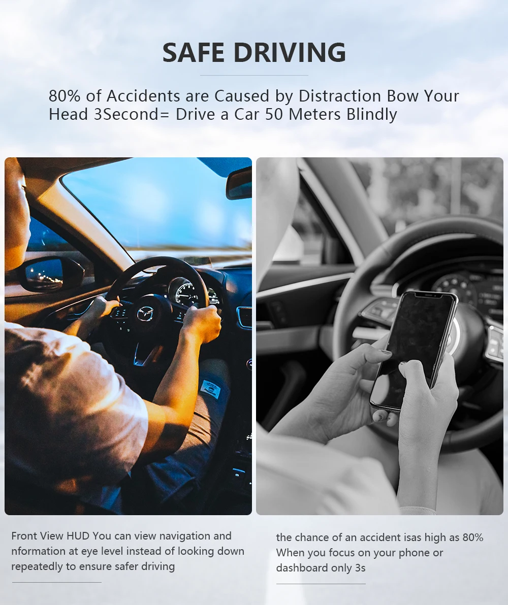 80% несчастных случаев вызваны отвлечением головы 3 секунды = слепо Управляйте автомобилем на 50 метров.