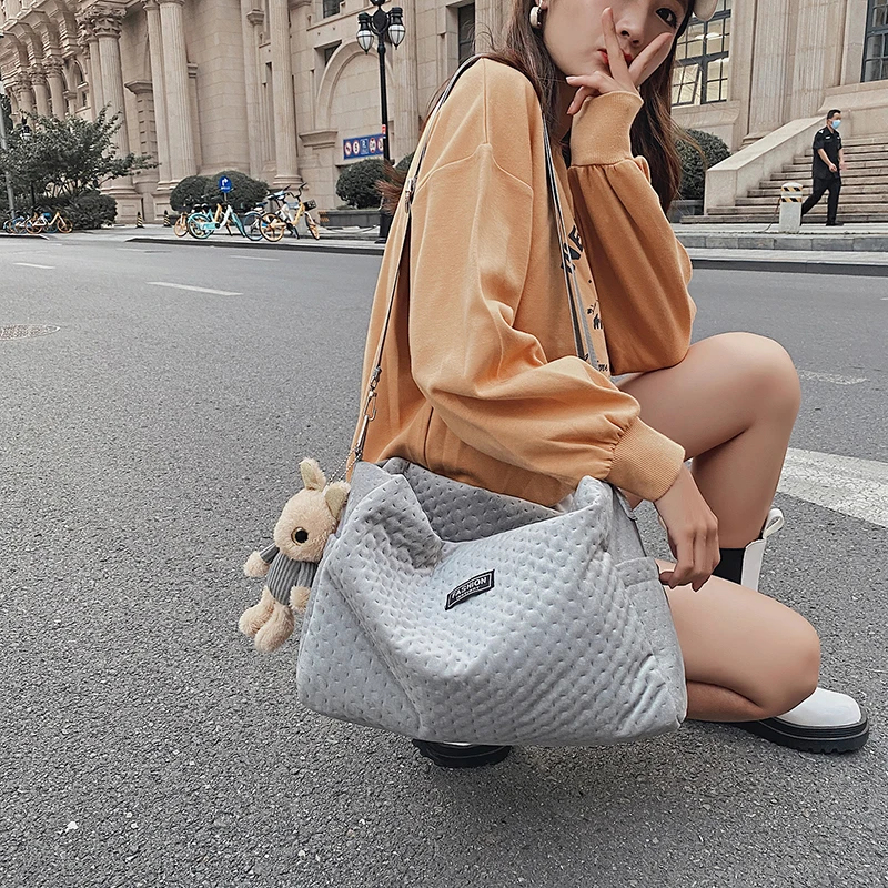 Удобная ткань, однотонный кукольный кулон, женская сумка на плечо, модная дизайнерская сумка, женская сумка-мессенджер, Мягкая Повседневная Сумка-тоут