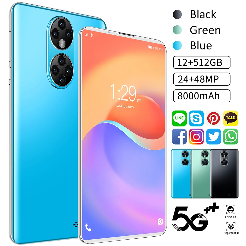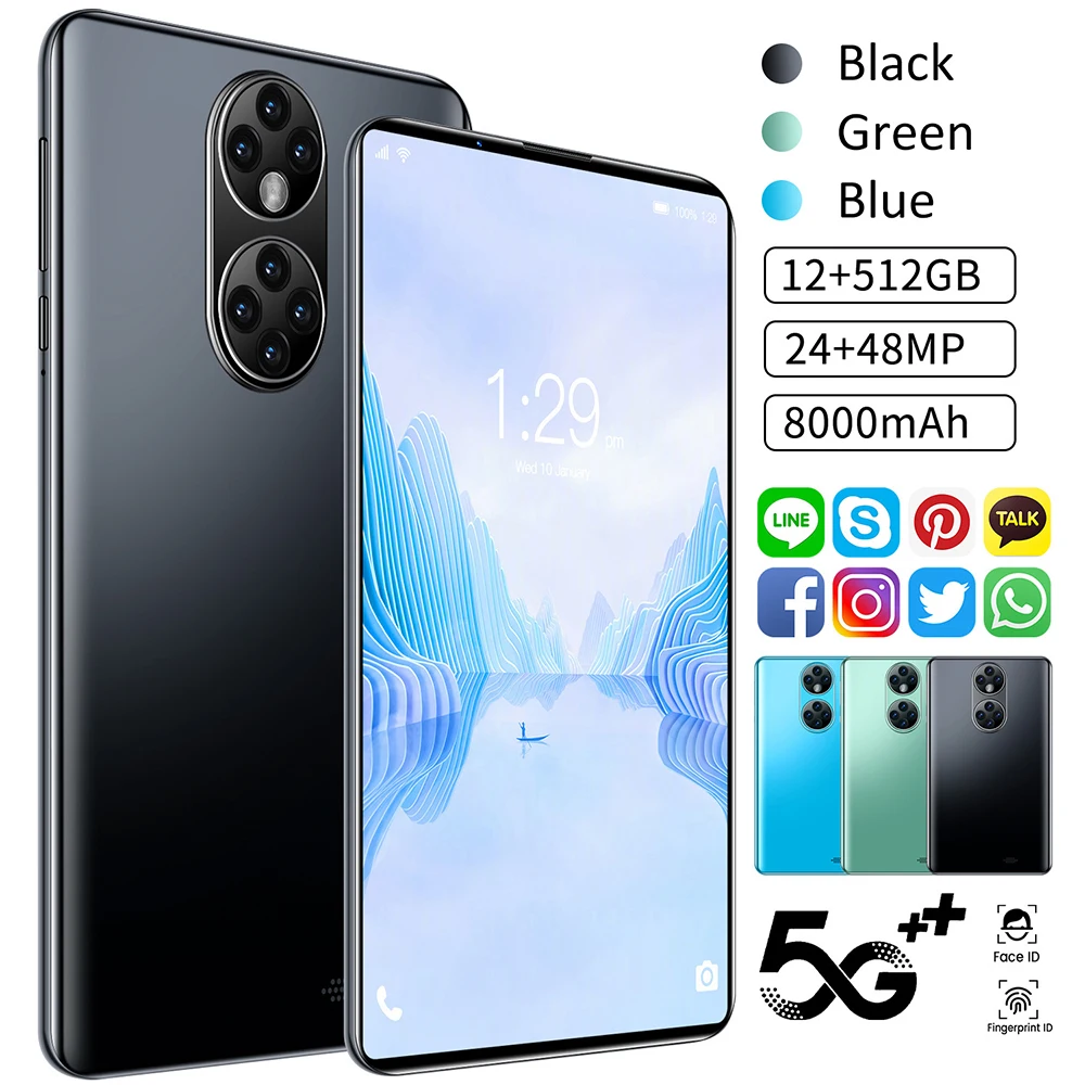 2021 последний P50 7 дюймовый планшет с европейской вилкой 12 Гб ОЗУ 512 Гб ПЗУ 5G LTE 24/48MP 3440X1040 Android 12