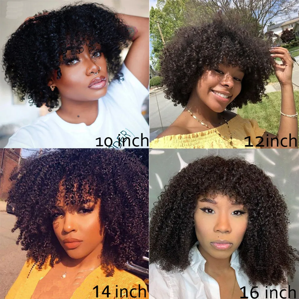 Mongolian Afro Kinky Curly Human Hair Wigs with Bangs Short Curly Remy Human Hair Machine Made Wigs for Women Glueless Bob Wigs