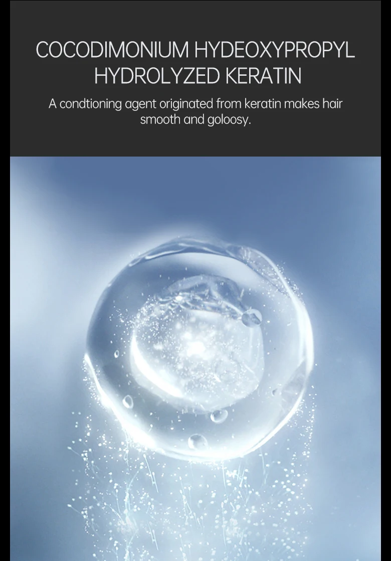 3) растительные аминокислоты, защищают Наружные оболочки клеток волосяных фолликул от ультрафиолетовых лучей и бензопирена, уменьшают повреждение солнечного света, сигаретного дыма, И выхлопной газ до рогового слоя волосяного вала.