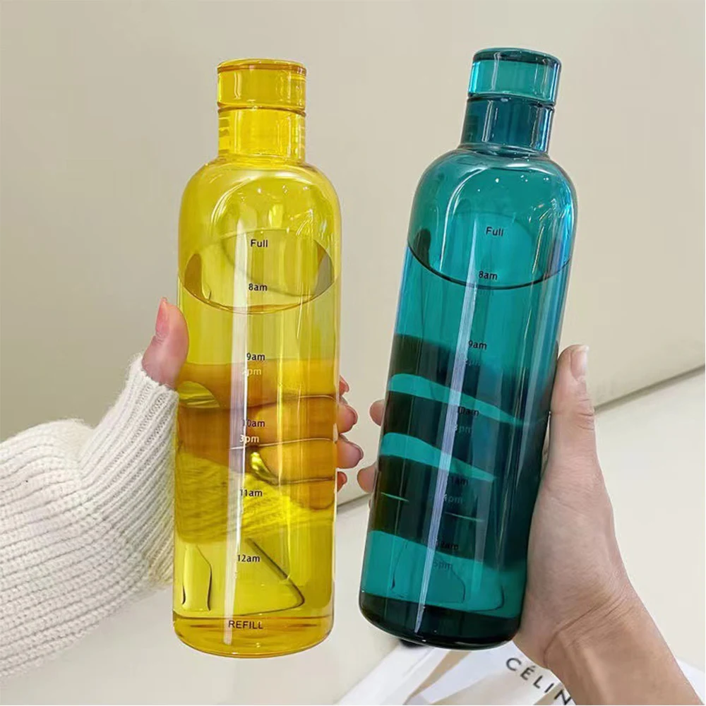 500 мл стеклянная бутылка с отметкой времени, крышка, вода, напитки, молоко, сок, чашка, Корейская бутылка для напитков для девочек, школьный подарок на день рождения