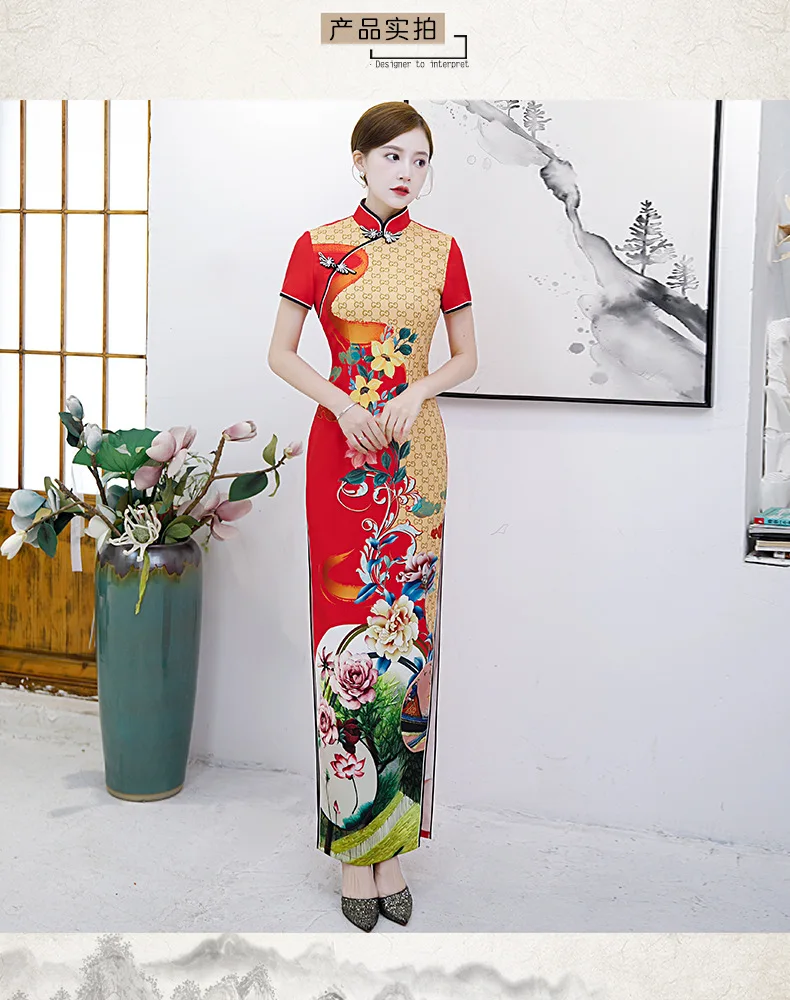 Платье-Ципао Женское зимнее бархатное с блестками и рукавом до локтя - купить по