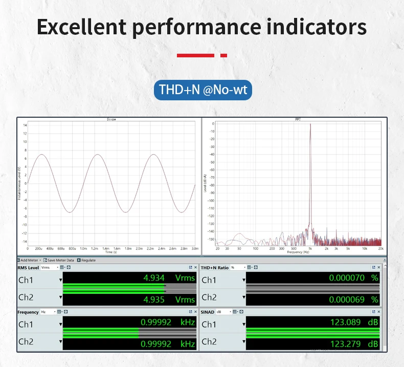 Ультра-низкий уровень шума, дизайн источника питания, так что Выходной шум такой же низкий, как 1.3uV (APX555B измеренное значение, не эквивалент);