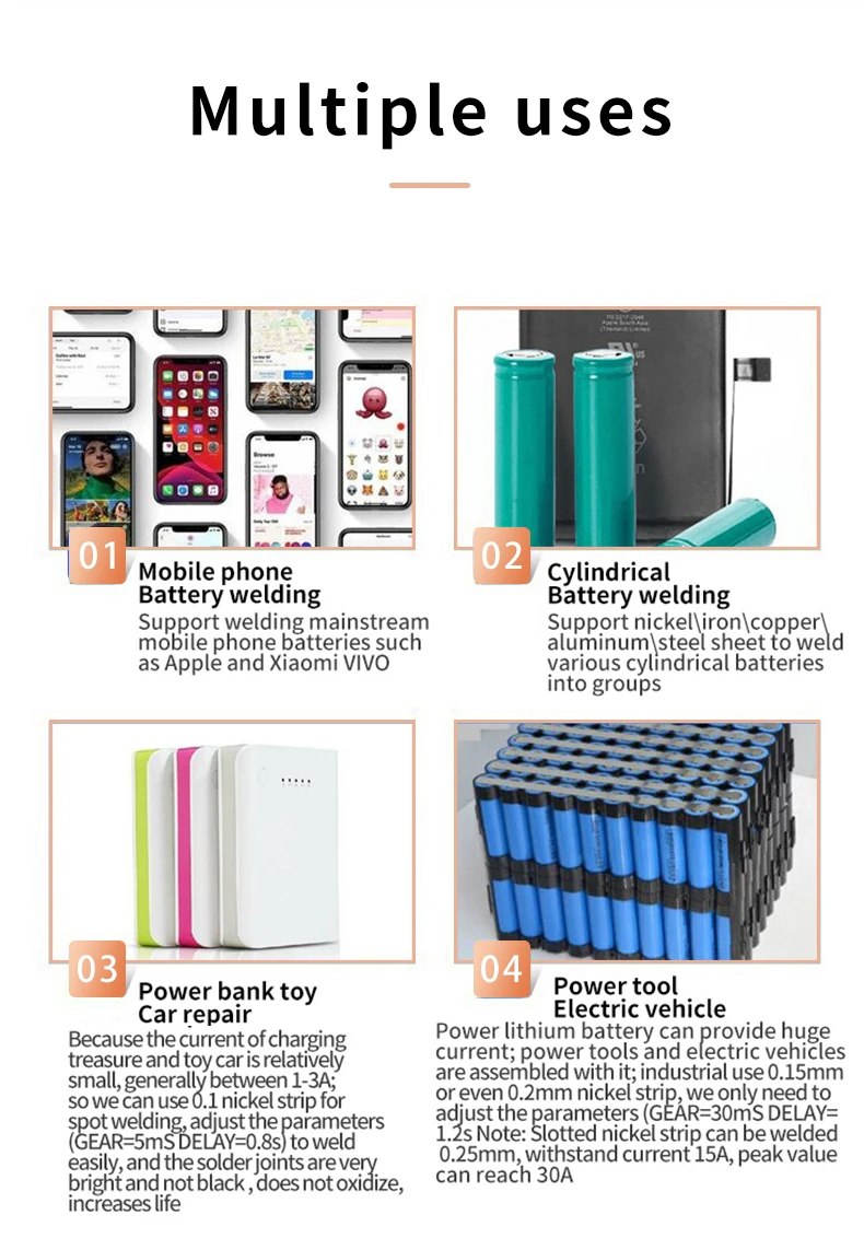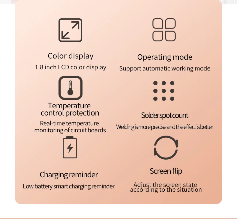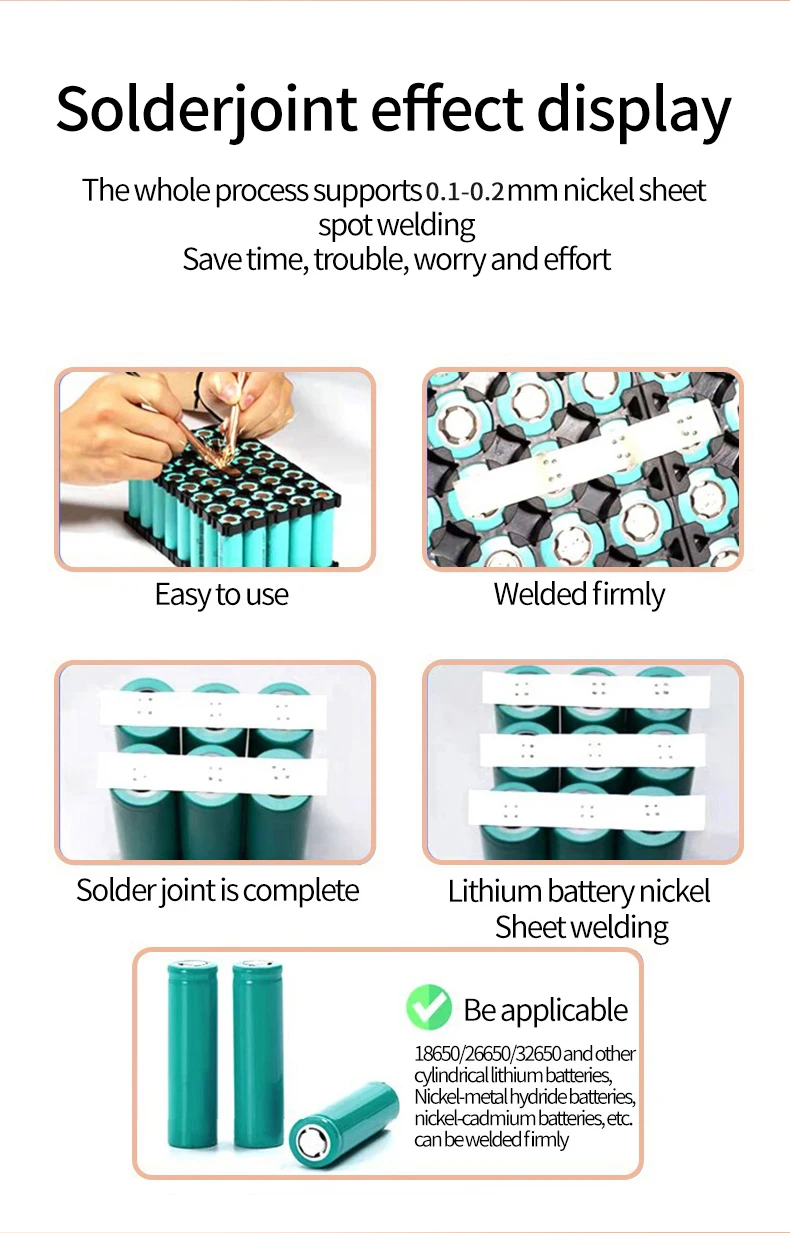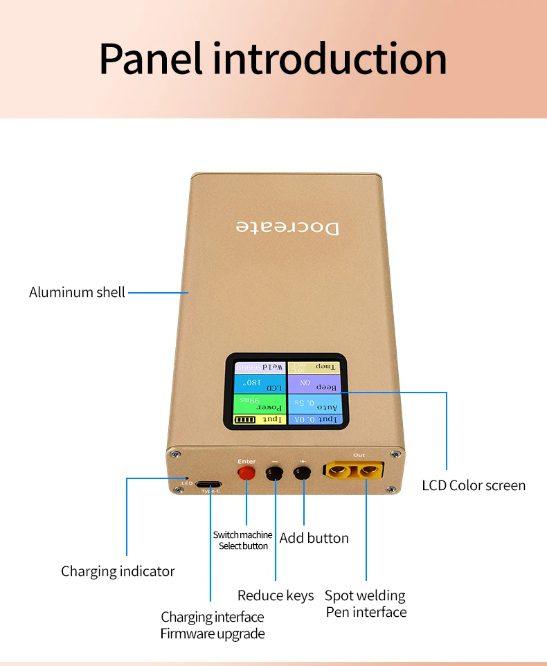 DO-01 машины для точечной сварки имеет 1,8-дюймовый ЖК-дисплей цветной экран дисплея, поддерживает автоматическое/ручной режим работы, с функциями низкого заряда батареи, мониторинг температуры печатной платы в режиме реального времени и напоминание о высокой температуре, флип-дисплей экрана, подсчет точечной сварки, автоматическое отключение, обновление прошивки и т. д.Технические параметры:Рекомендуемые никелевые полоски: 0,1-0,2 ммЧасы/дата/неделя/1,8 дюйма цвет ЖК-дисплейРежим работы: Автоматический/ручнойВстроенный аккумулятор: 10000 мАчМатериал корпуса: алюминиевый сплавТолщина провода паяльника: 8AWGЦикл зарядки: ПоддержкаНапоминание о защите: ПоддержкаОбновление прошивки: ПоддержкаАвтоматическое выключение: ПоддержкаДисплей питания: ПоддержкаОбнаружение температуры: ПоддержкаРазмер изделия: 147x82x22 ммВес нетто продукта: 450 гРазмер посылка: 210x100x58 ммВес упаковки: 700 гСмотрите так же другие товары: