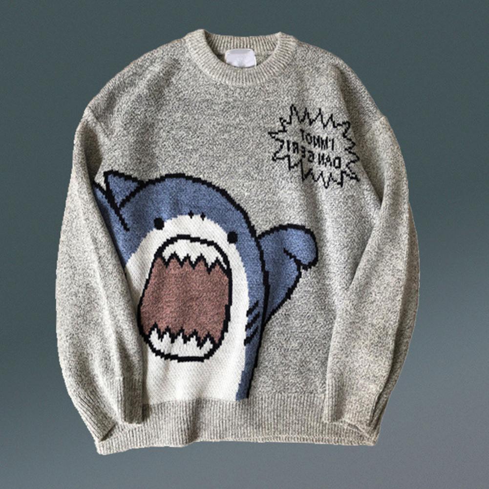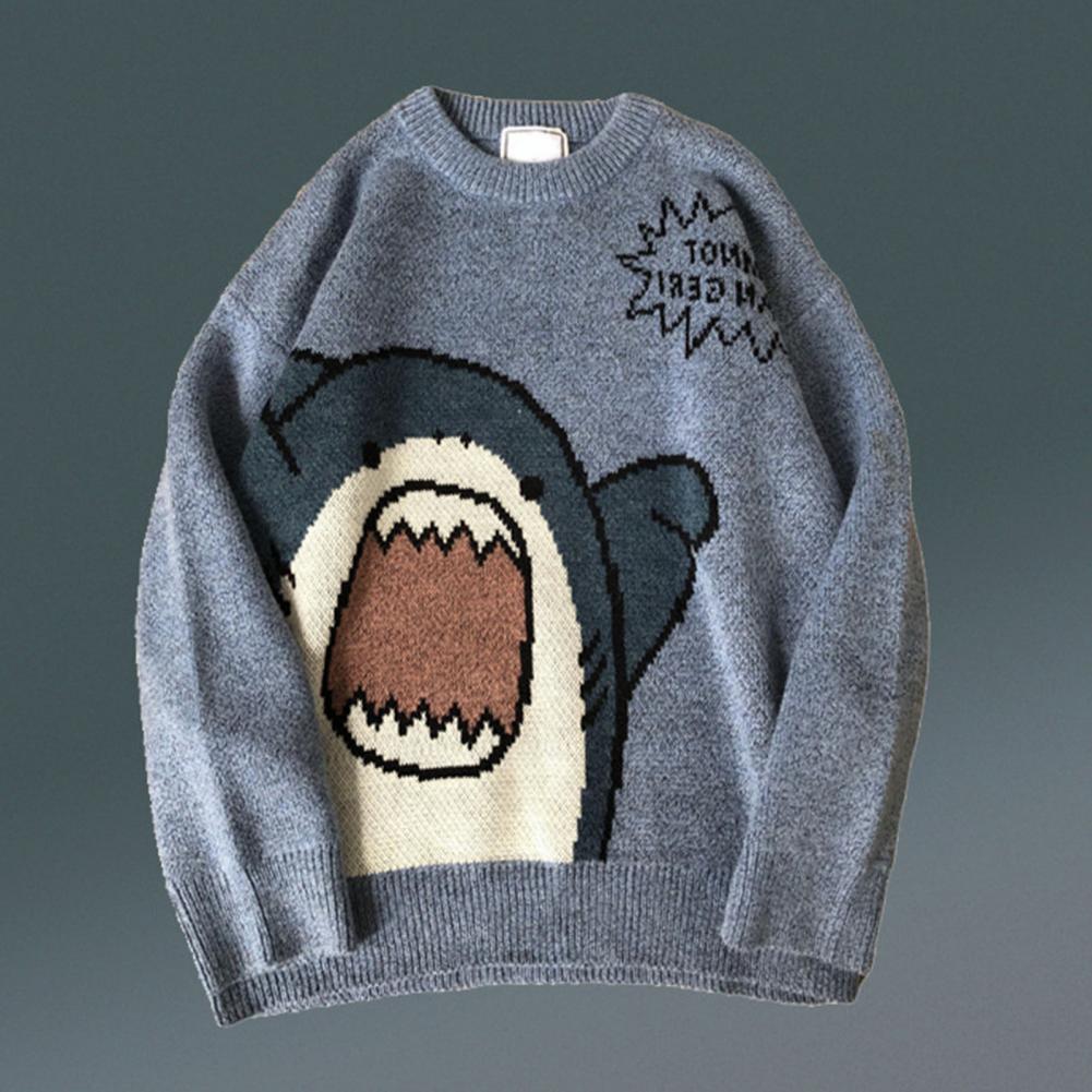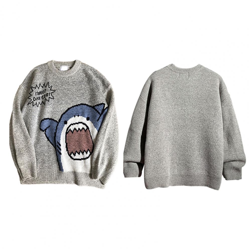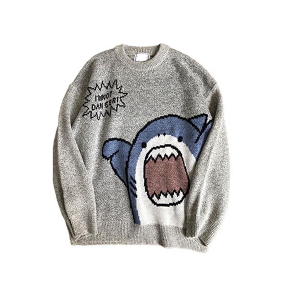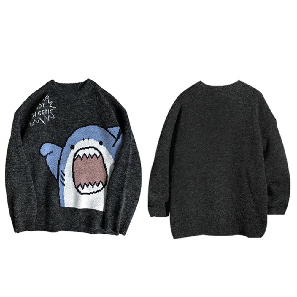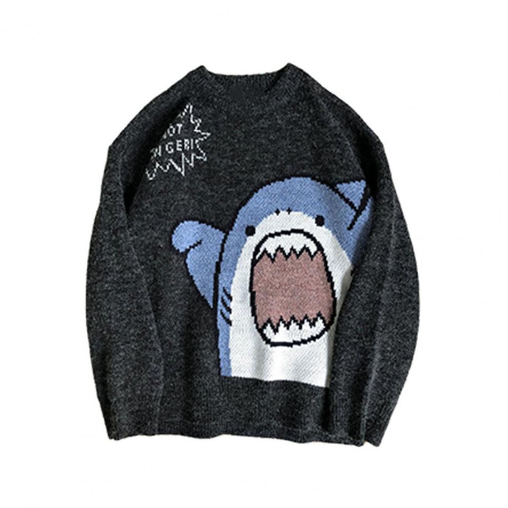 Свитер с очень забавным принтом акулы, поэтому он достаточно милый, чтобы вы выглядели более доступным и легким, и он подходит для многих случаев.
