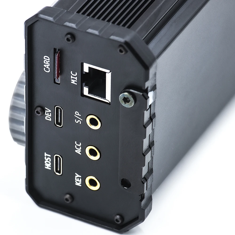 Он обеспечивает два usb-порта, поддерживает хост и устройство и поддерживает внешнюю tf-карту для хранения информации о канале или голосовой информации. Предусмотрен интерфейс ACC, и его можно подключить к усилителю XPA125B через выделенный кабель для реализации автоматического управления. 3,5 мм-ключ предусмотрен интерфейс для подключения с ручным управлением Морс ключ и автоматическая Морс ключ. Он обеспечивает интерфейс S/P, который может быть определен как внешний динамик или функция наушников через выбор меню. Он также обеспечивает выходной интерфейс IQ сигнала, который используется для подключения внешнего оборудования для отбора проб для вспомогательного приема.
