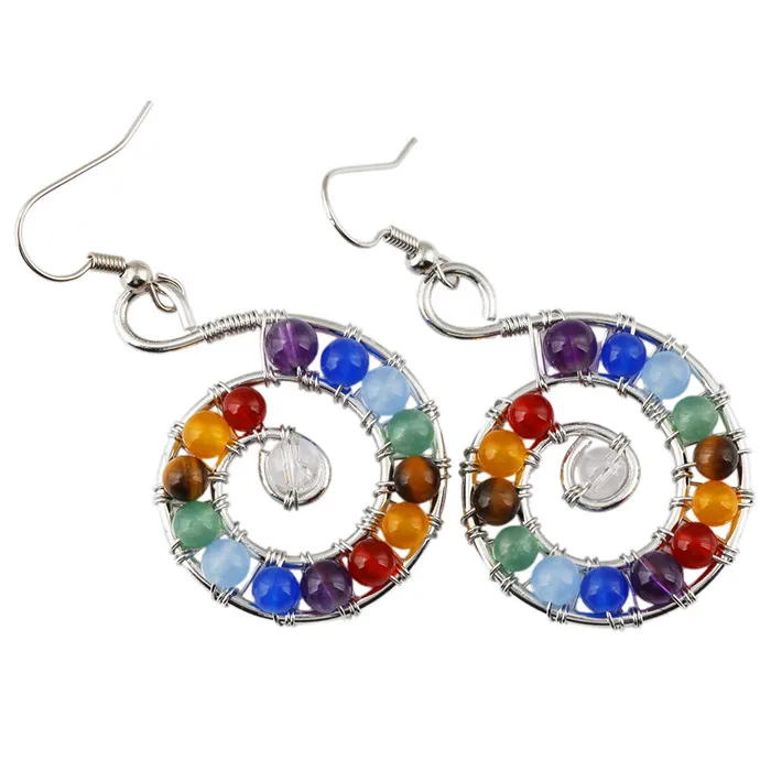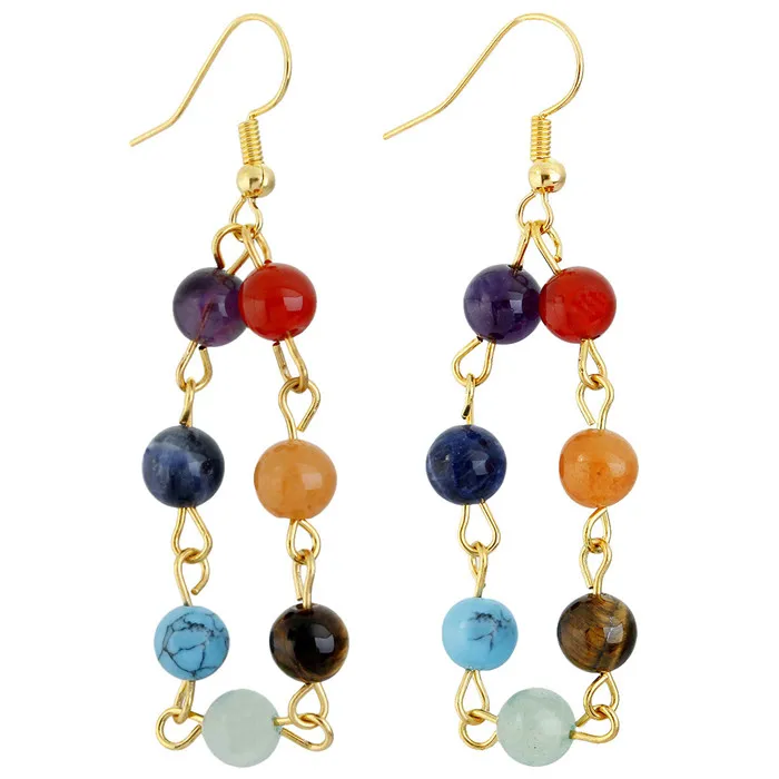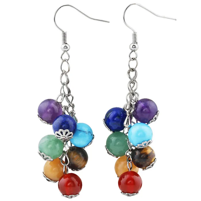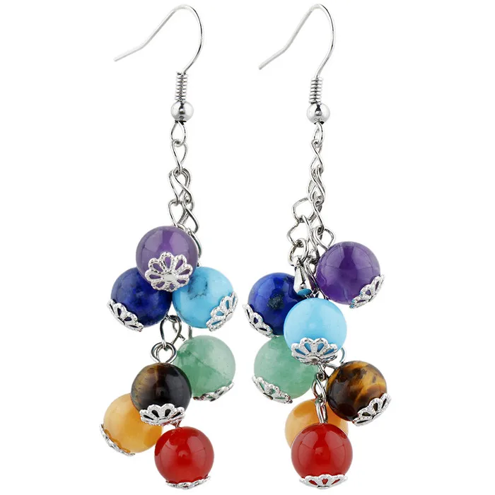 Оптовая продажа 6 пара/лот 7 чакра камень Красочный Кристалл длинные висячие серьги-Крючки кристаллический крючок рейки целебные бусы серьги-подвески | |