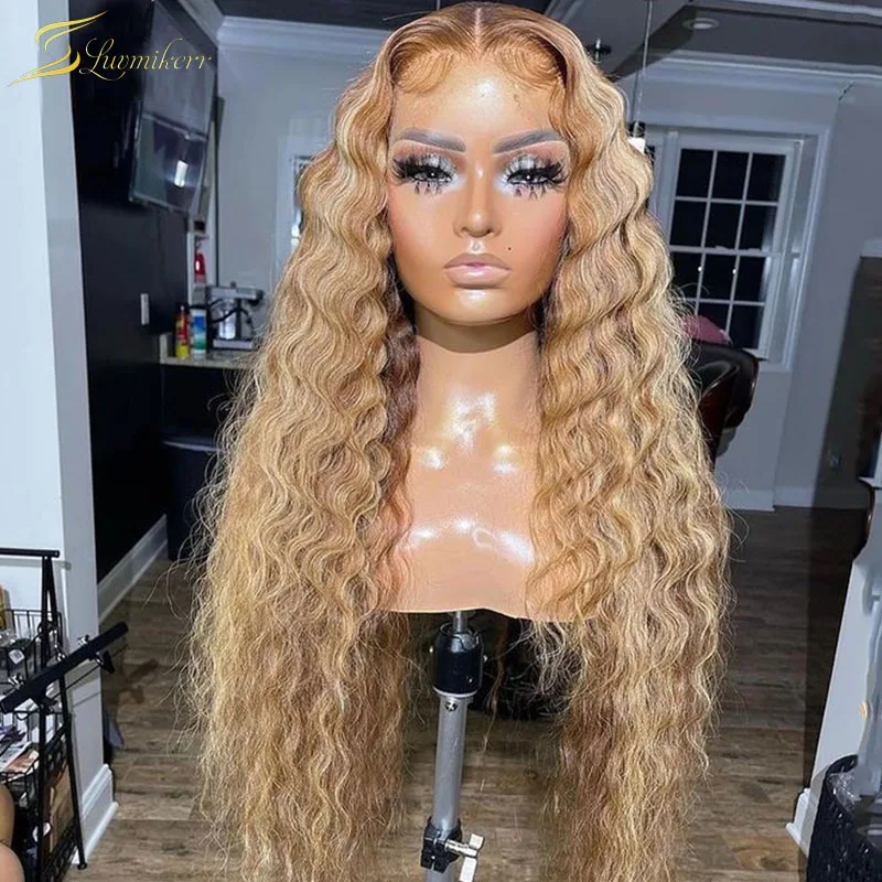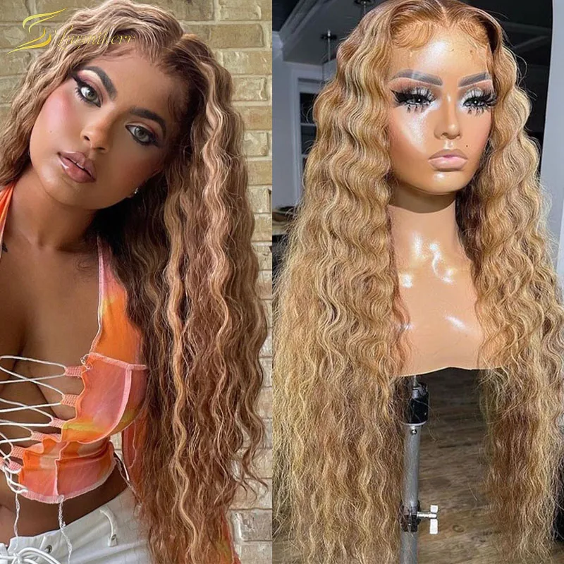360 Омбре медовый блонд изюминка HD кружевной передний al парик глубокая волна кудрявые человеческие волосы парики водная волна 13x 4 кружевной передний парик preprucked