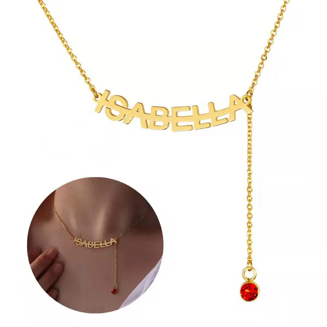 Название: ожерелье из нержавеющей стали с именем на заказ, Золотое колье, ювелирное изделие, индивидуальное письмо с камнем на день рождения, ожерелье для женщин, подарок на день рождения