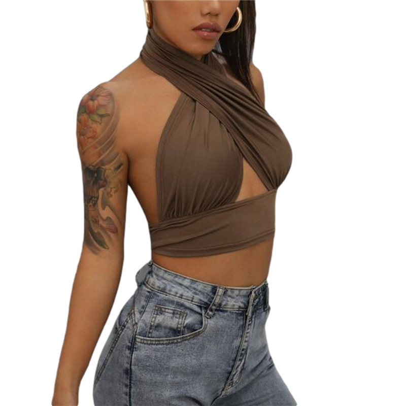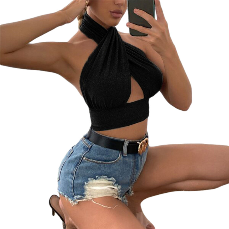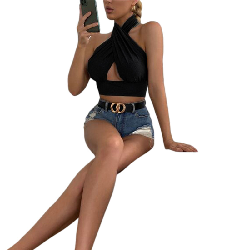 Женские летние топы на бретельках, однотонные облегающие кроп-топы с перекрещивающимися бретелями и открытой спиной
