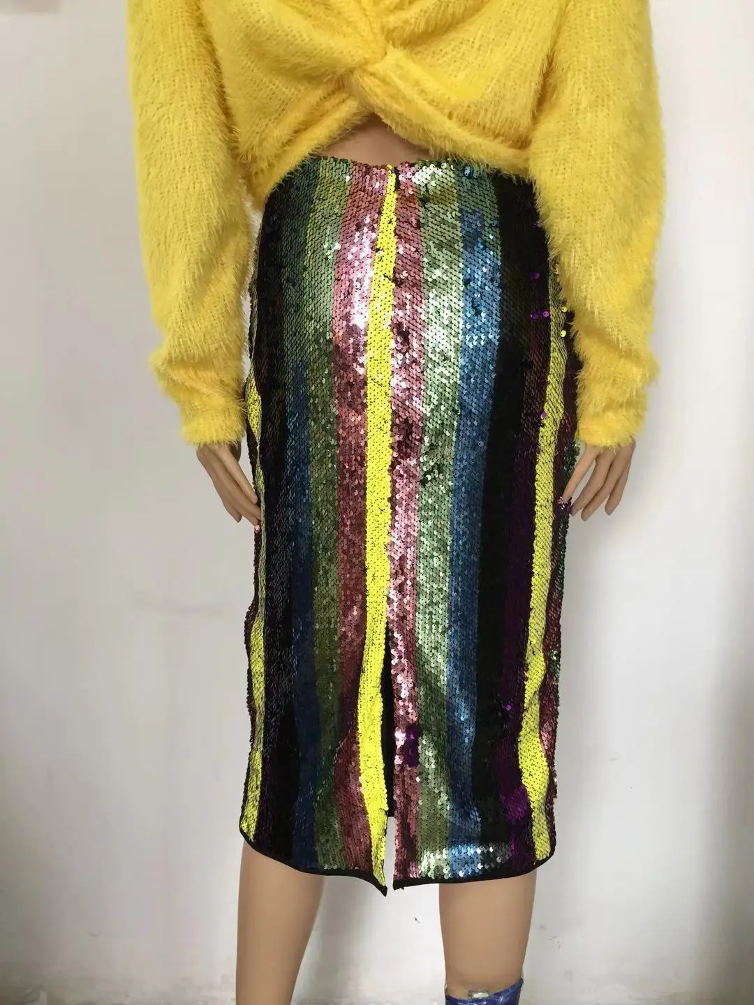SKMY женская одежда пикантная юбка средней длины вечерние Клубные платья в полоску с блестками в стиле пэчворк облегающая юбка осень-зима новый стиль 2021