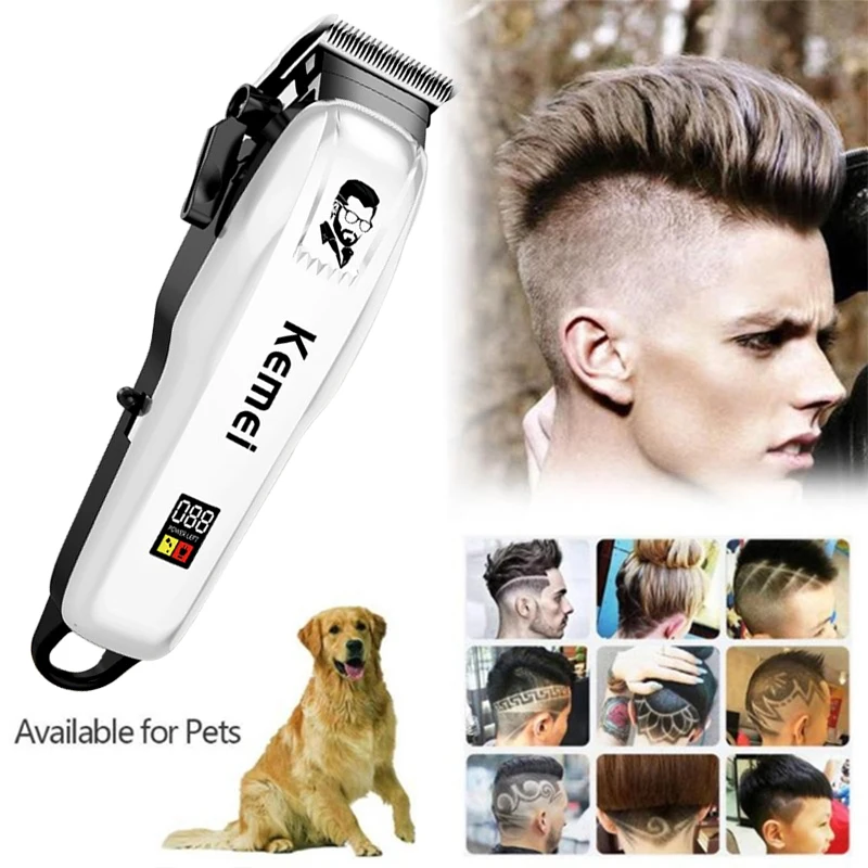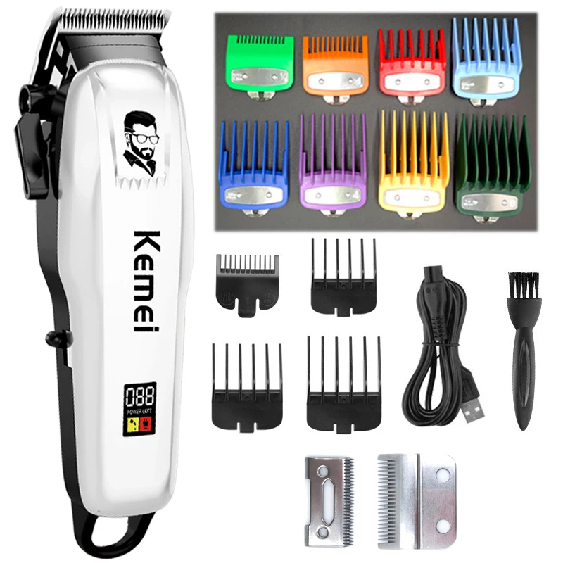 Kemei электрическая машинка для стрижки волос Профессиональная парикмахерская бритва триммер для Для мужчин, машинка для стрижки волос, инструмент для Бритья 8/10 шт. лимит ЖК-дисплей Дисплей
