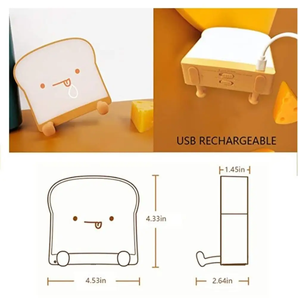 Милый мультяшный Тост Хлеб Ночной светильник держатель для телефона светодиодный Usb Перезаряжаемый прикроватный светильник силиконовый Декор для комнаты Ночной светильник подарок для ребенка