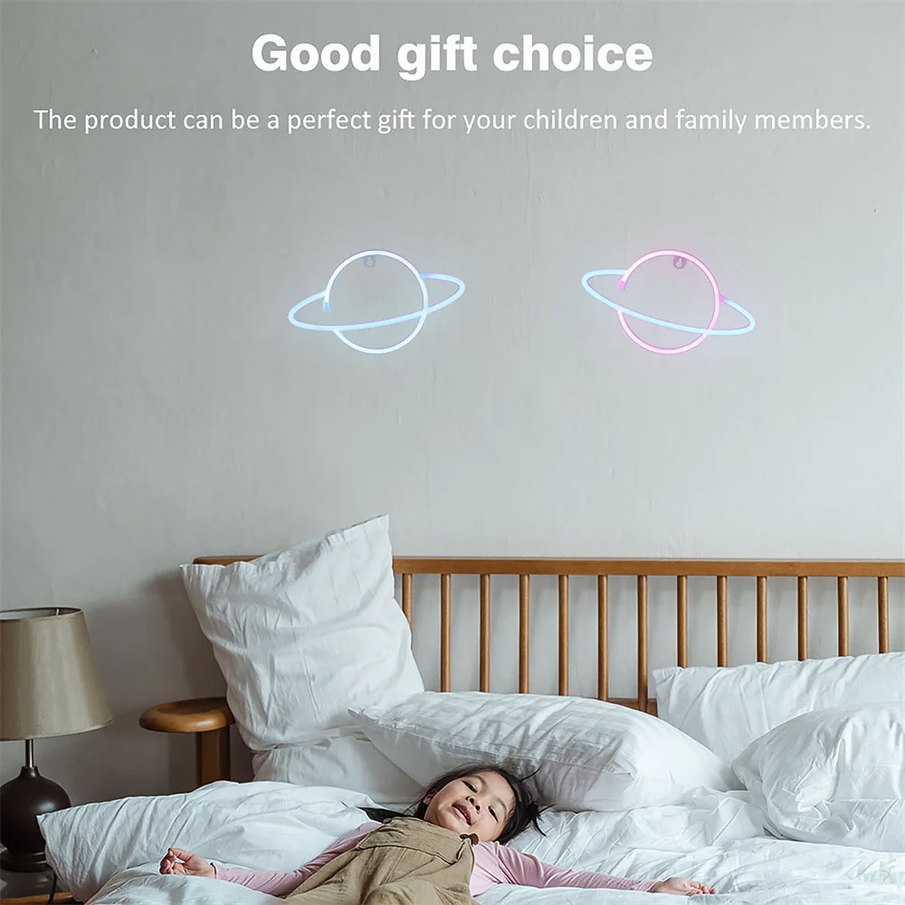Неоновые огни в форме планеты удовлетворяют вкусам детей, поэтому они могут быть отличными подарками для дней рождения детей, Рождества или других праздников.
