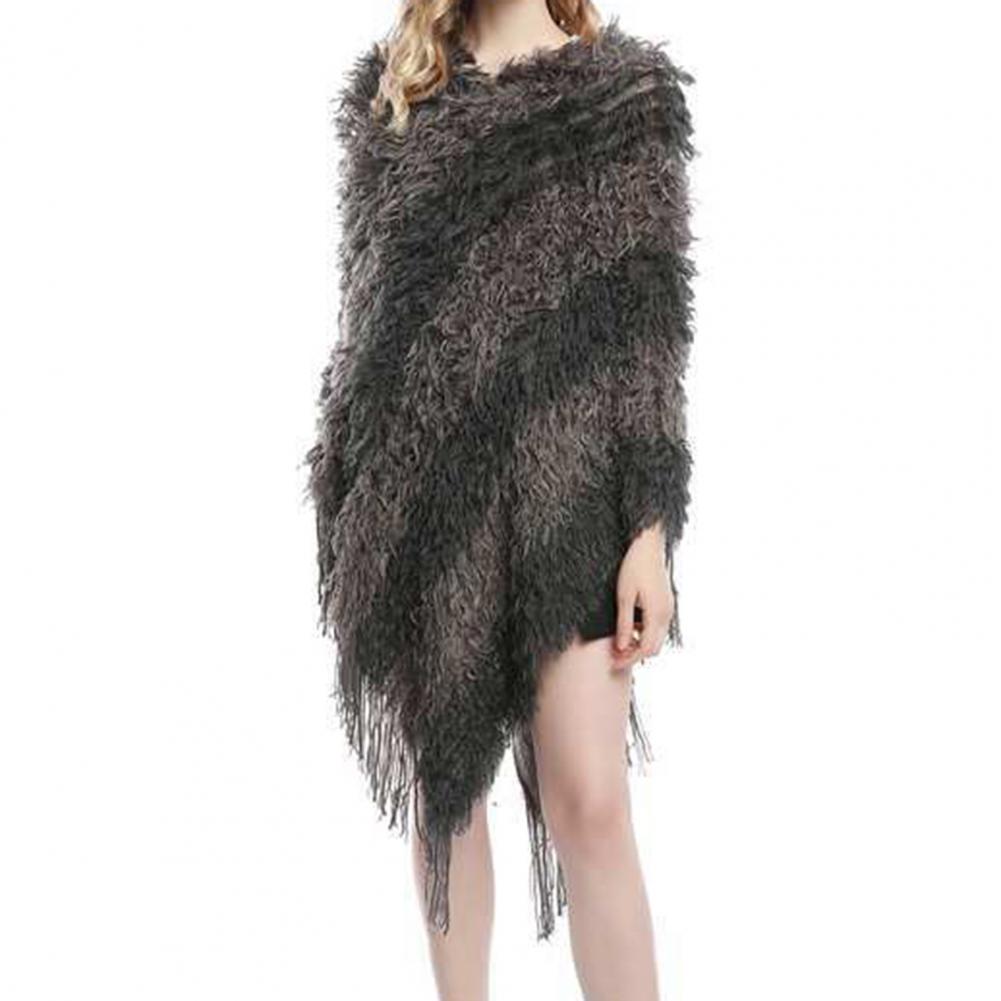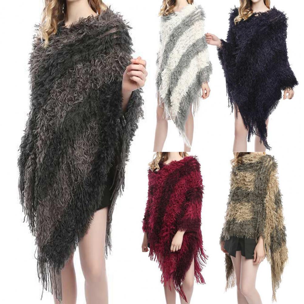 Накидка с v-образным вырезом, трикотажное меховое вязаное теплое пончо, пальто, пончо, вечерние пальто