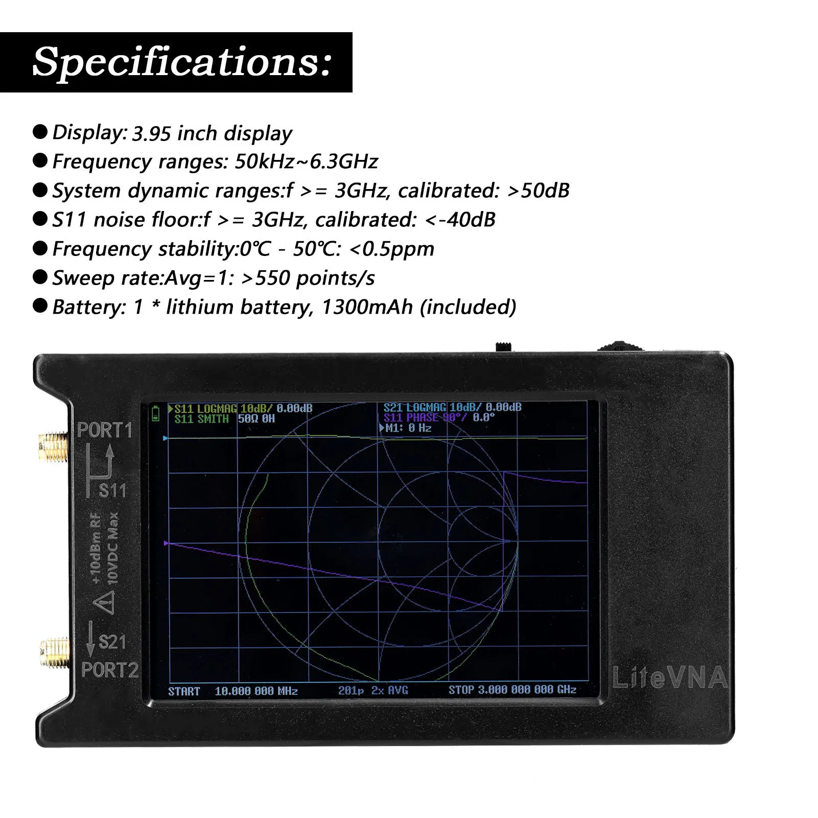 С диапазонах измерений до 6,3 ГГц, LiteVNA способен выполнять общие радиолюбителей и приложений IoT, так же, как новых Wi-Fi 5 ГГц тестирования, возможность применения последних 5,8 ГГц Wi-Fi 5,8 ГГц передачи изображений.